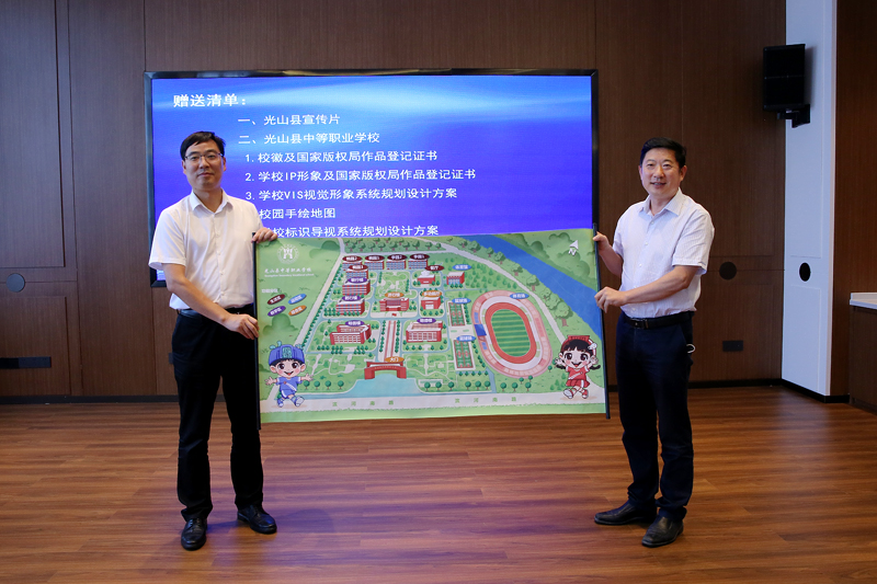 李焕锋代表乐鱼online(中国)向光山县赠送了“砖桥镇形象系统规划设计方案”等帮扶工作成果。