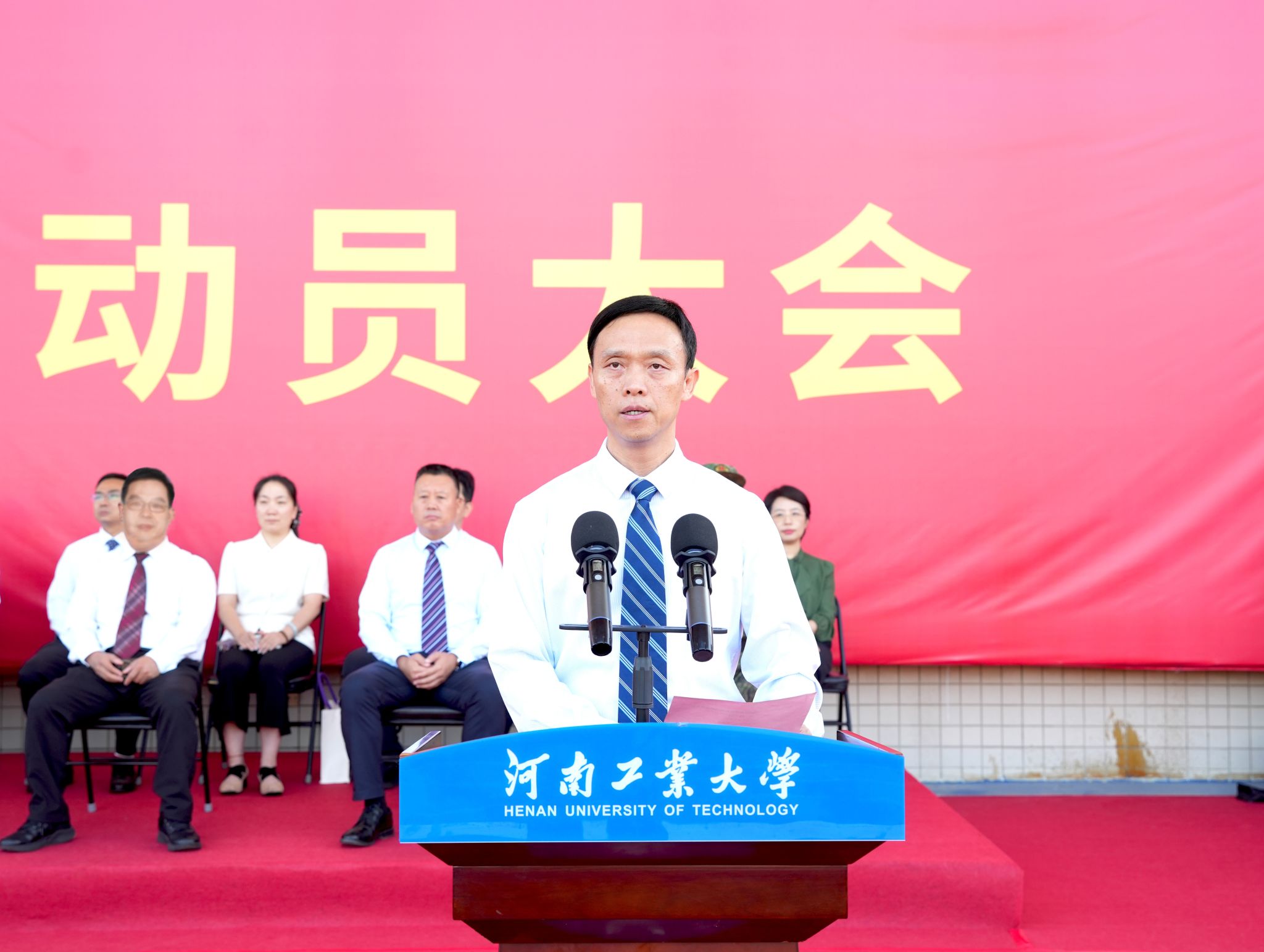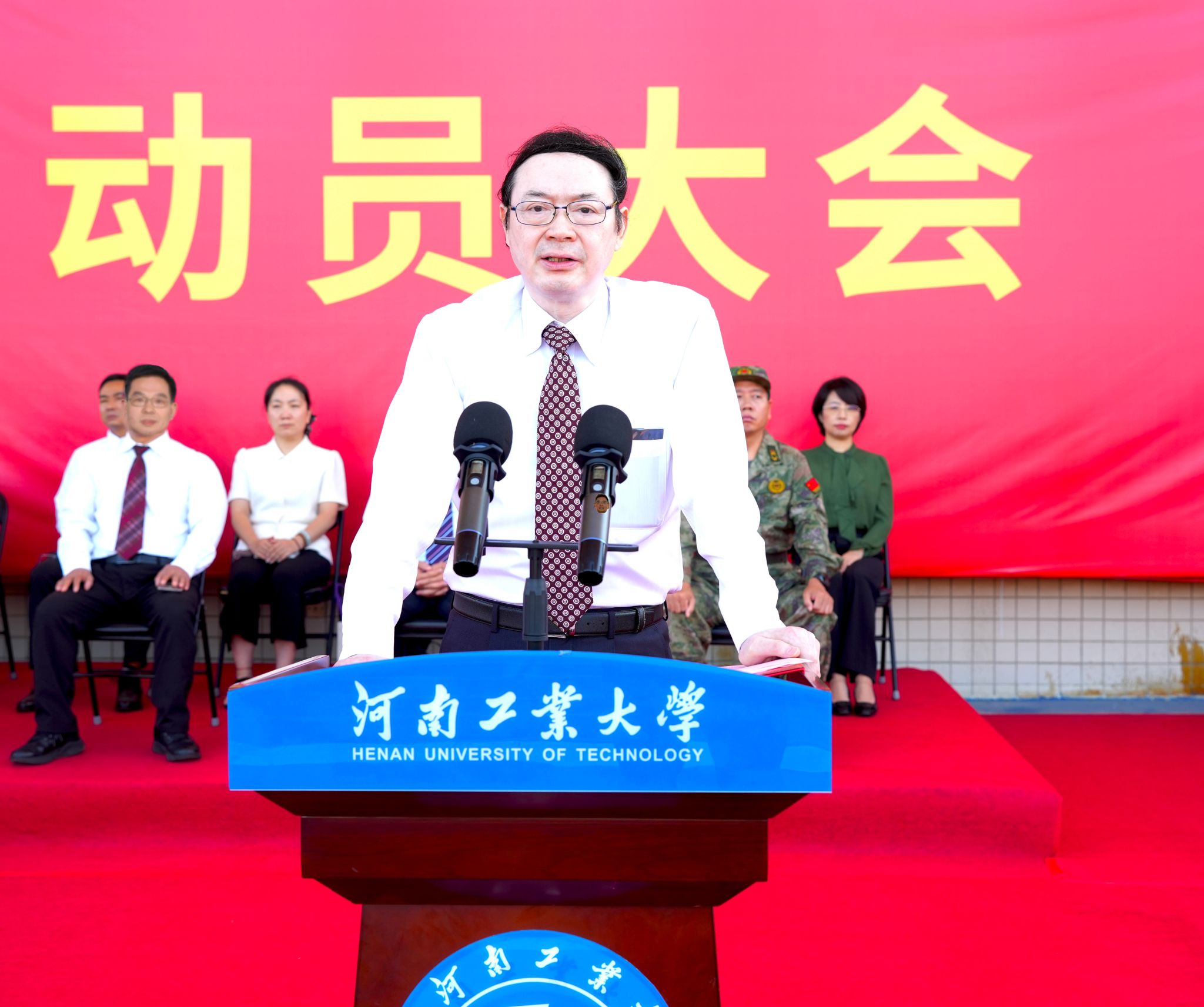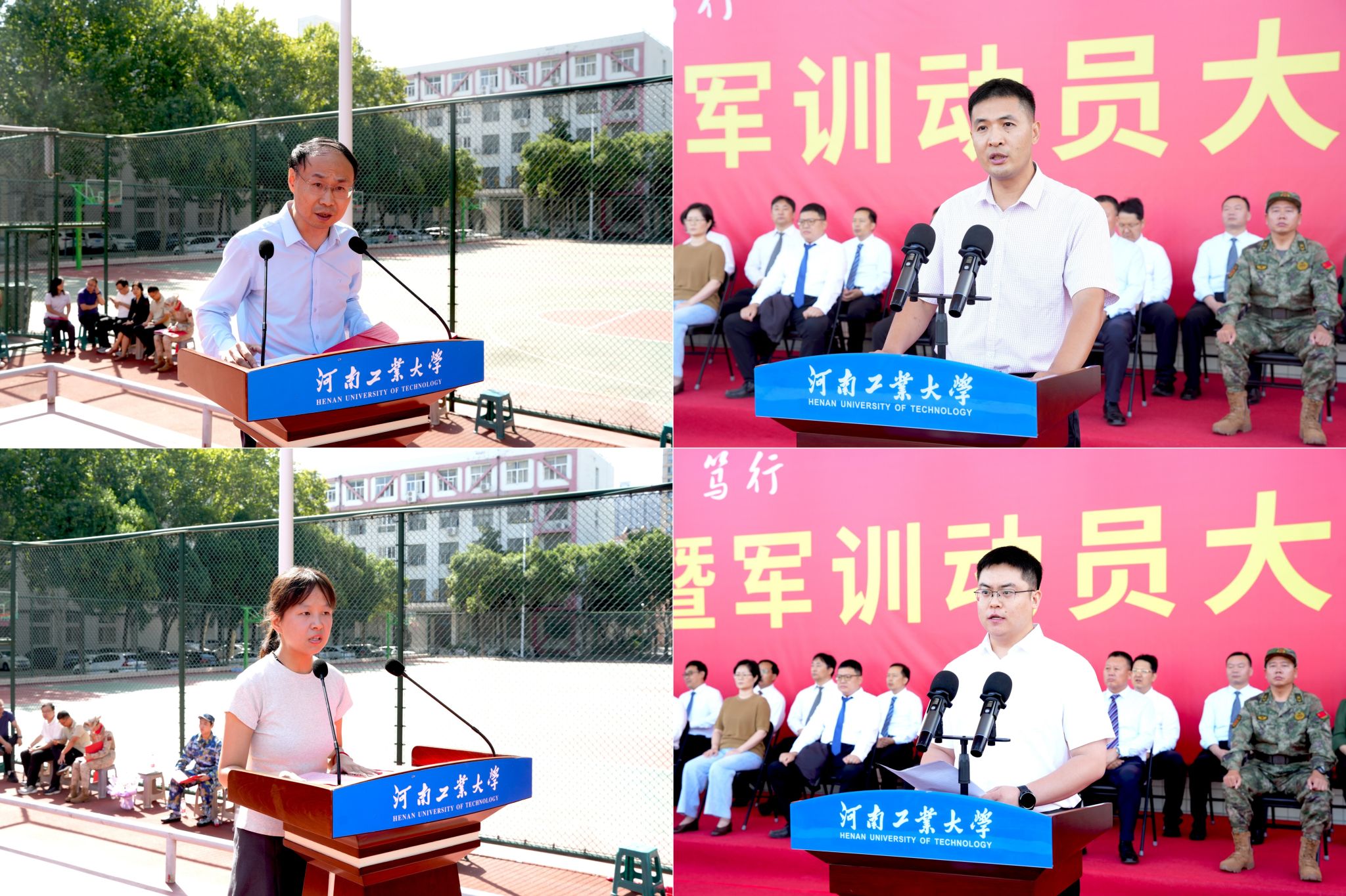副校长邓淼磊从学科专业、生源分布、录取比例、合作办学等方面介绍了2025年的录取情况。粮油食品学院刘华敏教授和管理学院李广平教授作为教师代表发言,勉励大家要珍惜时光、勇于探索,在“硬”时代铸造“软”实力,书写不负时代的人生篇章。土木工程学院博士研究生王宏恺,中国人民抗日战争暨世界反法西斯战争胜利80周年大会阅兵式受阅方队队员、明德书院本科生李嘉晨琦,信息科学与工程学院研究生王一博代表高年级学生发言,他们号召大家要刻苦钻研、追求卓越,以拼搏书写精彩人生,用奋斗描绘青春底色。中国人民抗日战争暨世界反法西斯战争胜利80周年大会阅兵式受阅方队队员、国际教育学院本科生王伊帆代表全体军训教官庄严承诺,一定安全、顺利、圆满地完成此次军训任务,为2025级新同学上好大学国防教育“第一课”。2025级新生代表机电工程学院陈书豪、电气工程学院千昊冉在发言中表示,要珍惜“工大人”的光辉荣誉,以实际行动践行“请党放心、强国有我”的铮铮誓言。