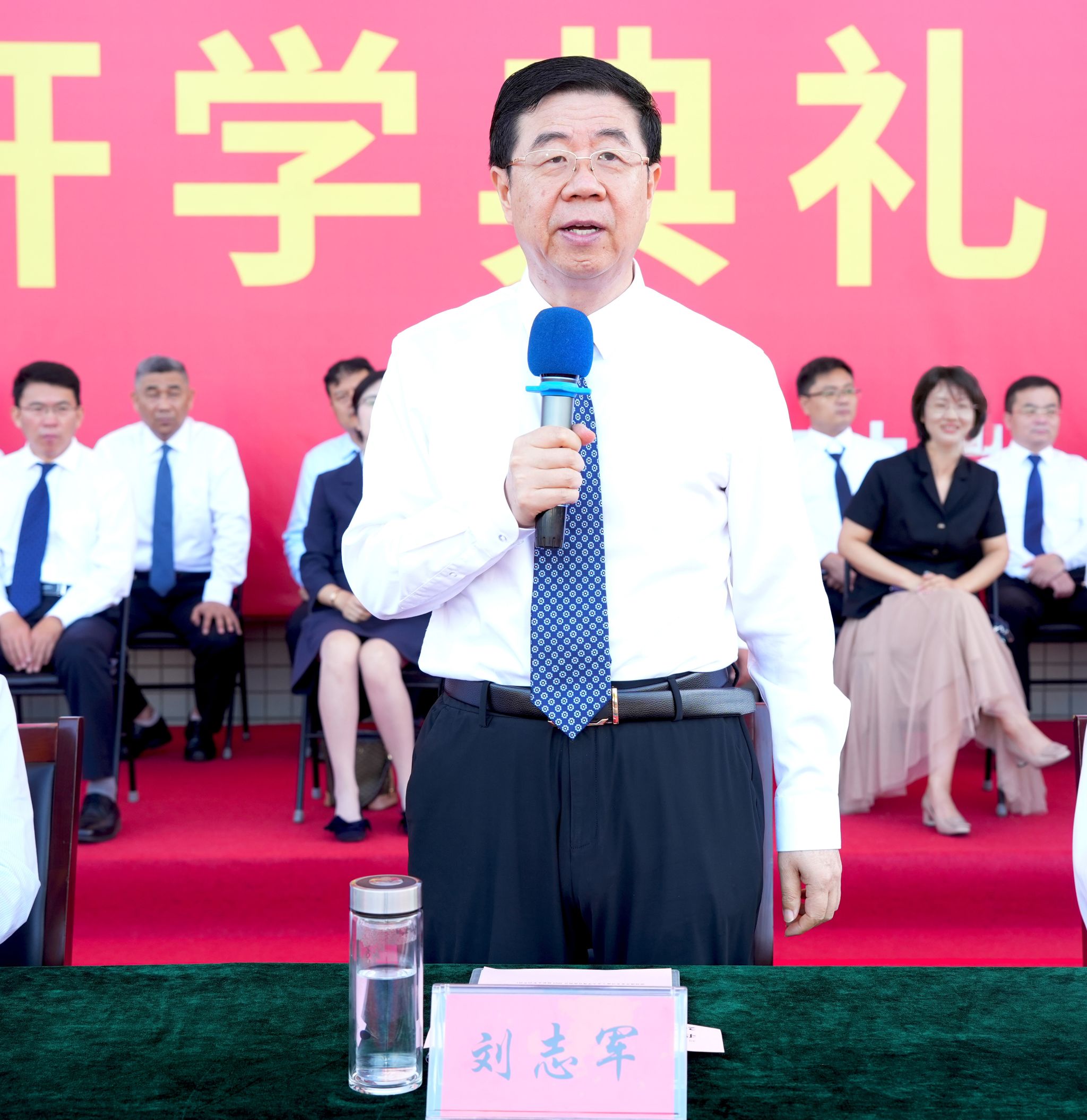 校党委书记刘志军向校党委学生工作部、武装部部长、2025级军训团团长王迪授“军训团”旗,并宣布2025级新生军训正式开始!