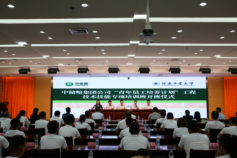 8月14日,由中国储备粮管理集团有限公司主办、河南工业大学承办的中储粮“青年员工培养计划”工程技术技能专项培训班在河南工业大学莲花街校区正式开班。中储粮集团公司人力资源部部长肖富银、仓储管理部部长巩福生、中储粮集团河南分公司党委书记、总经理王振民、河南工业大乐鱼online(中国)长李成伟以及中储粮集团公司和河南分公司有关同志及100名参训青年员工共同参加了开班仪式。开班仪式由河南工业大学副校长陈桂香主持。