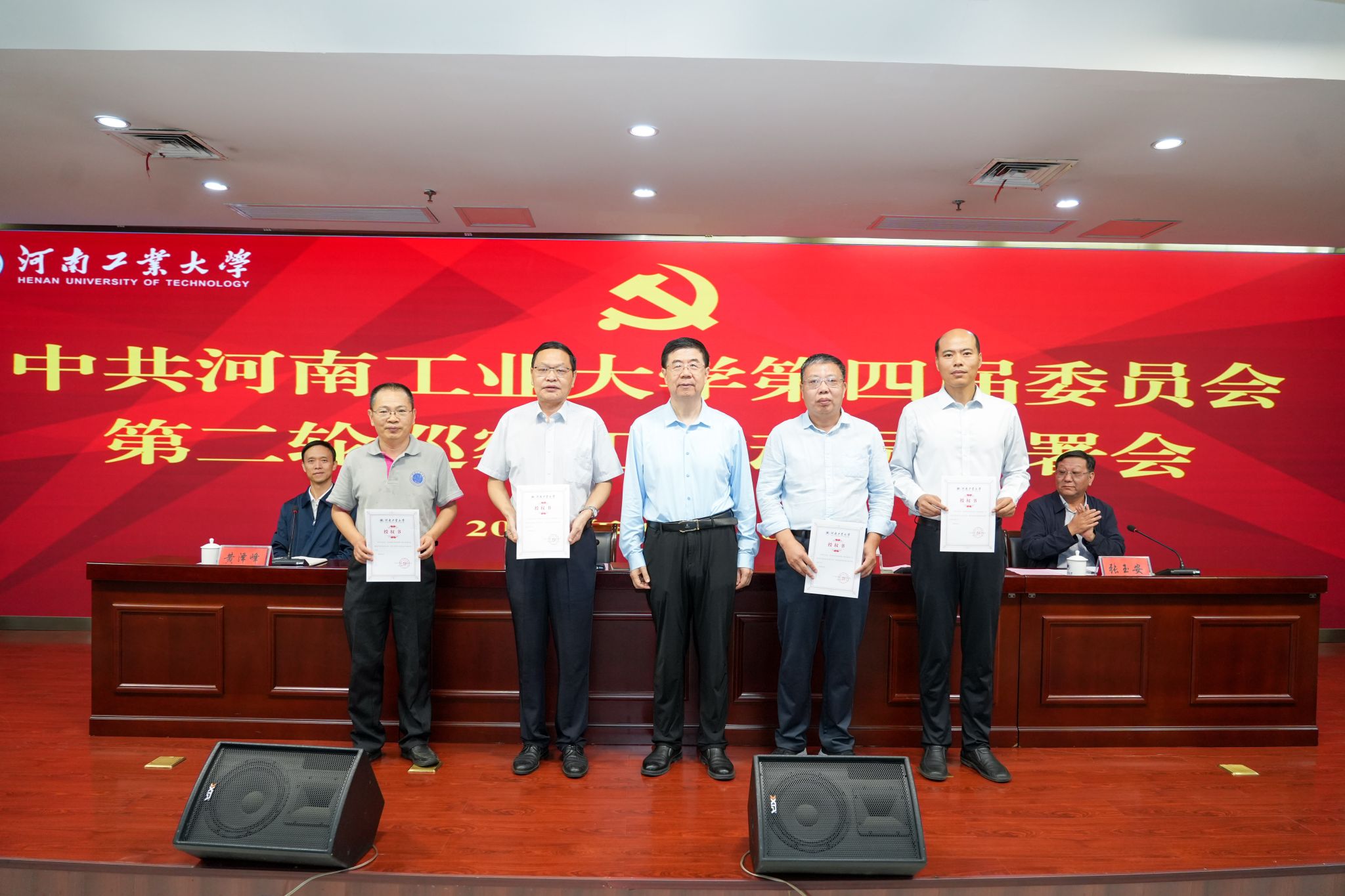 会上,周相寅宣读了《中共河南工业大学第四届委员会第二轮巡察工作方案》和《关于第二轮巡察巡察组授权任职及任务分工的决定》;黄泽峰宣读了《关于表彰第一轮巡察优秀巡察干部的决定》;刘志军向巡察组组长张宏伟、谭长福、李定旺和李艳福颁发了《授权书》;巡察工作领导小组向优秀巡察干部王远哲、吴国清、韩晓谊、张国静、时燕明颁发证书。