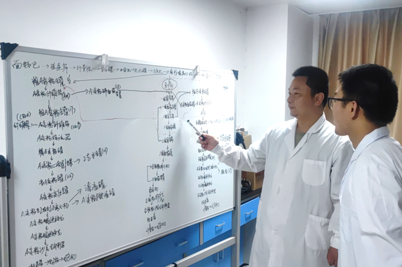 粮油食品学院“威特布恩生物”项目指导教师对学生进行实验思路讲解