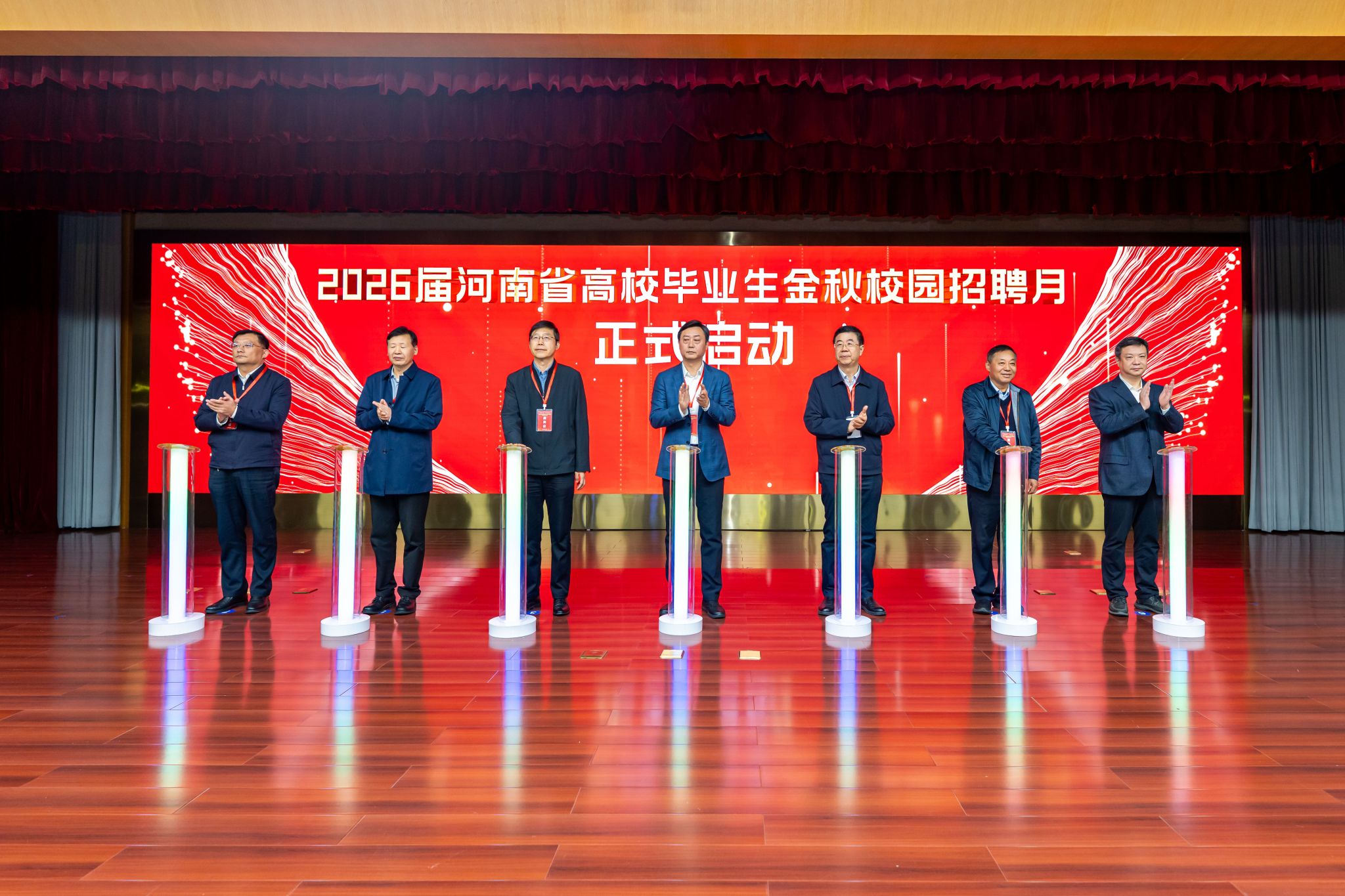 10月17日,2026届河南省高校毕业生金秋校园招聘月启动仪式暨秋季校园双选会在我校举办。省教育厅、省发改委、省工信厅、省人社厅、省卫健委及我校领导出席启动仪式。省大中专学生就业服务中心相关负责同志,省人才交流中心相关负责同志,部分高校就业工作分管负责同志,省级分市场牵头高校、驻郑各普通高校就业部门负责同志,部分高校就业指导教研室主任、就业骨干教师,广大用人单位、毕业生代表参加启动仪式及相关活动。启动仪式由校党委副书记黄泽峰主持。