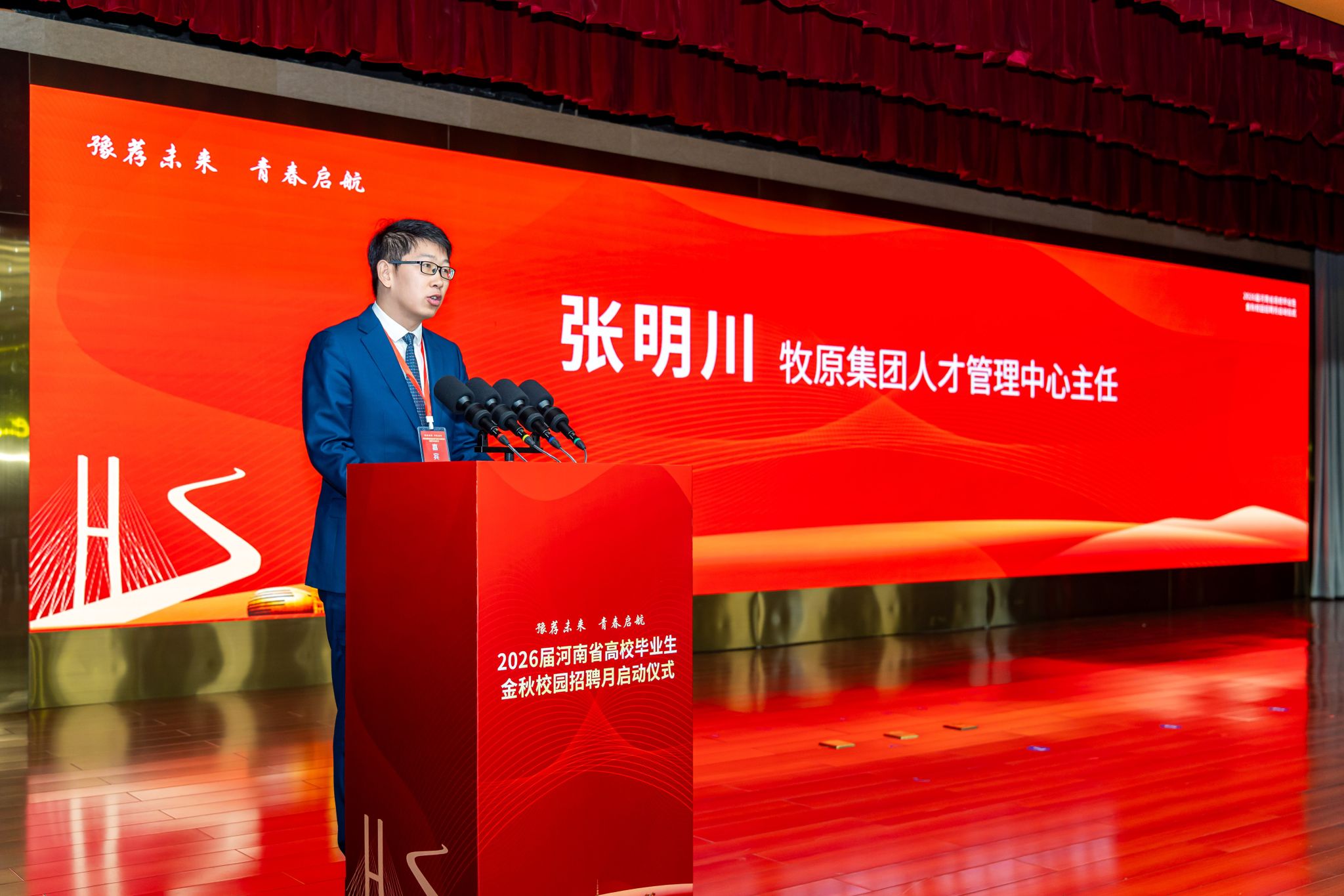牧原集团人才管理中心主任张明川作为用人单位代表发言;我校材料科学与工程学院董清妍同学作为2026届毕业生代表发言。