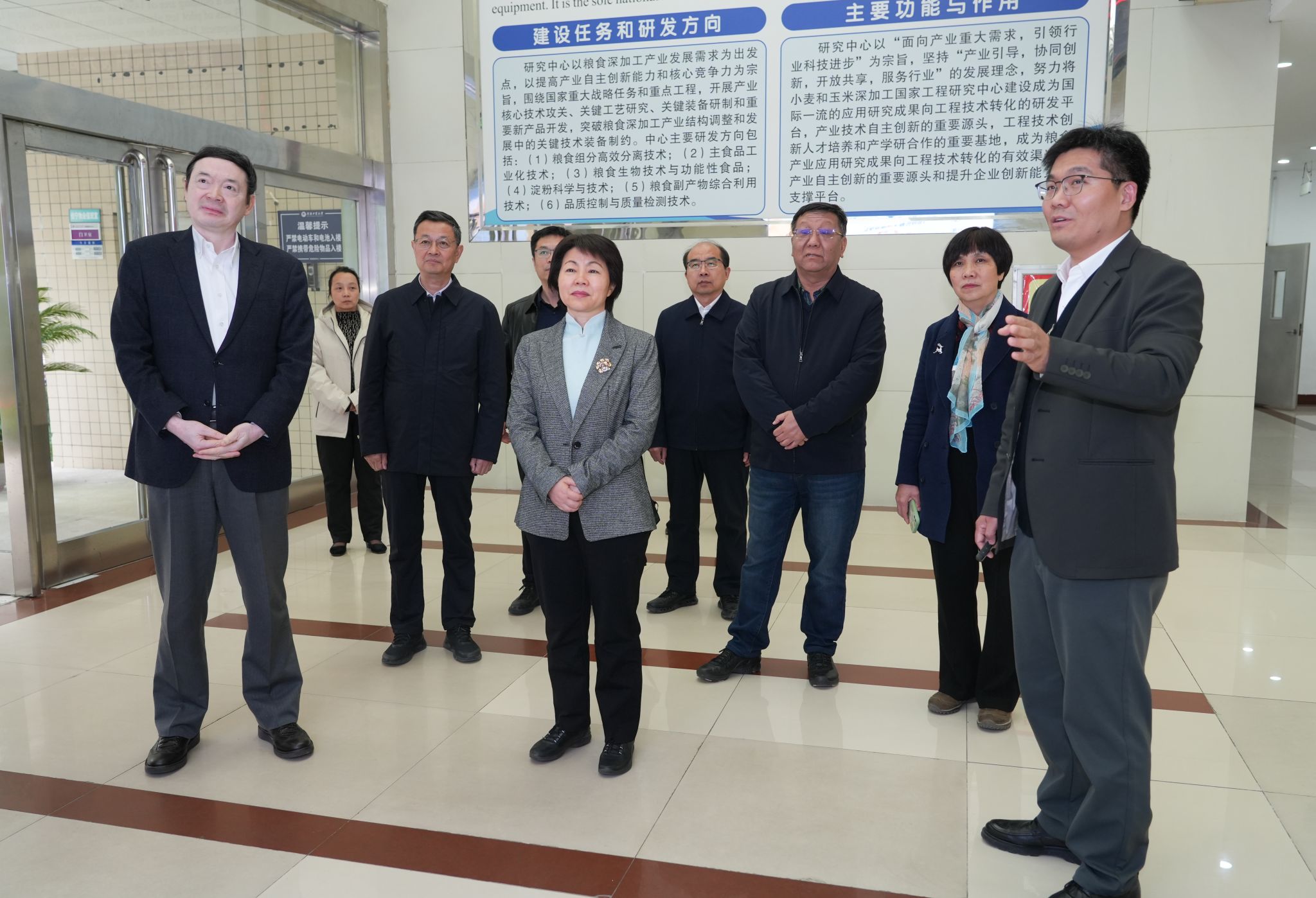 会前,黄红霞一行考察了小麦和玉米深加工国家工程研究中心、粮油食品教研中试中心、超硬及新型复合材料研发中心。
