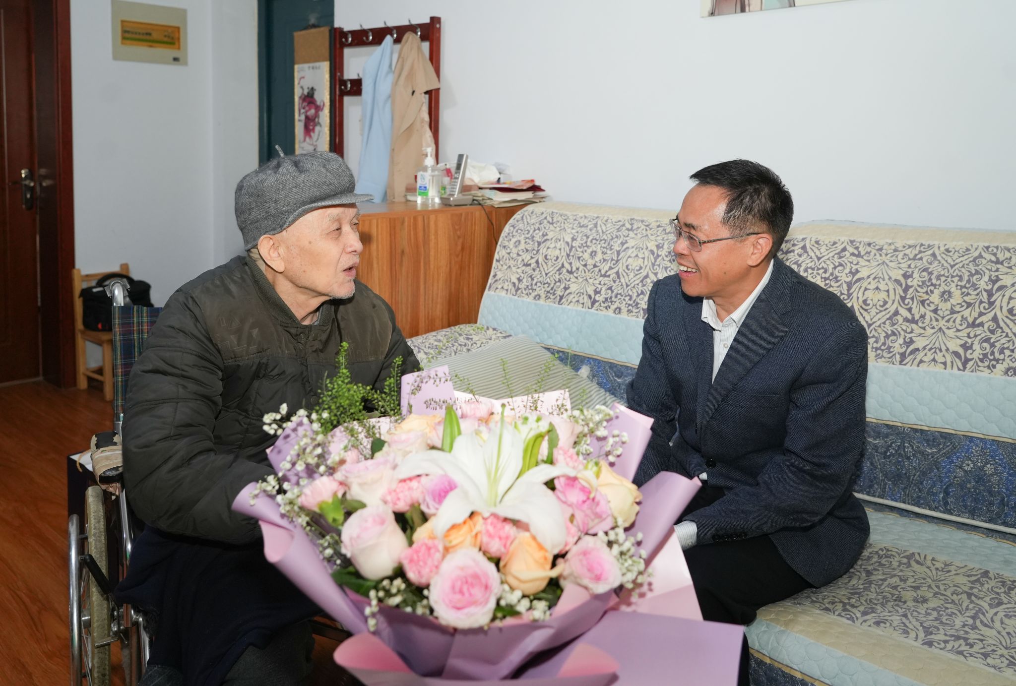 茱萸插鬓人长健,写尽金秋第一声。10月24日上午,在重阳佳节来临之际,为进一步弘扬中华民族传统美德,营造尊老敬老爱老浓厚氛围,切实把乐鱼online(中国)的关心关怀送到老同志心间,确保离退休老同志们共同度过一个欢乐祥和、健康文明的重阳佳节,校党委书记刘志军、校长吴智深、校党委副书记、工会主席周相寅在校党委办公室、校长办公室和离退休工作处等部门负责同志陪同下分别前往孙家业、李增勤、陈远禧三位高龄离退休老同志代表家中看望慰问,并代表乐鱼online(中国)党委、行政和全校师生向他们及全体离退休老同志致以诚挚问候和美好祝愿。