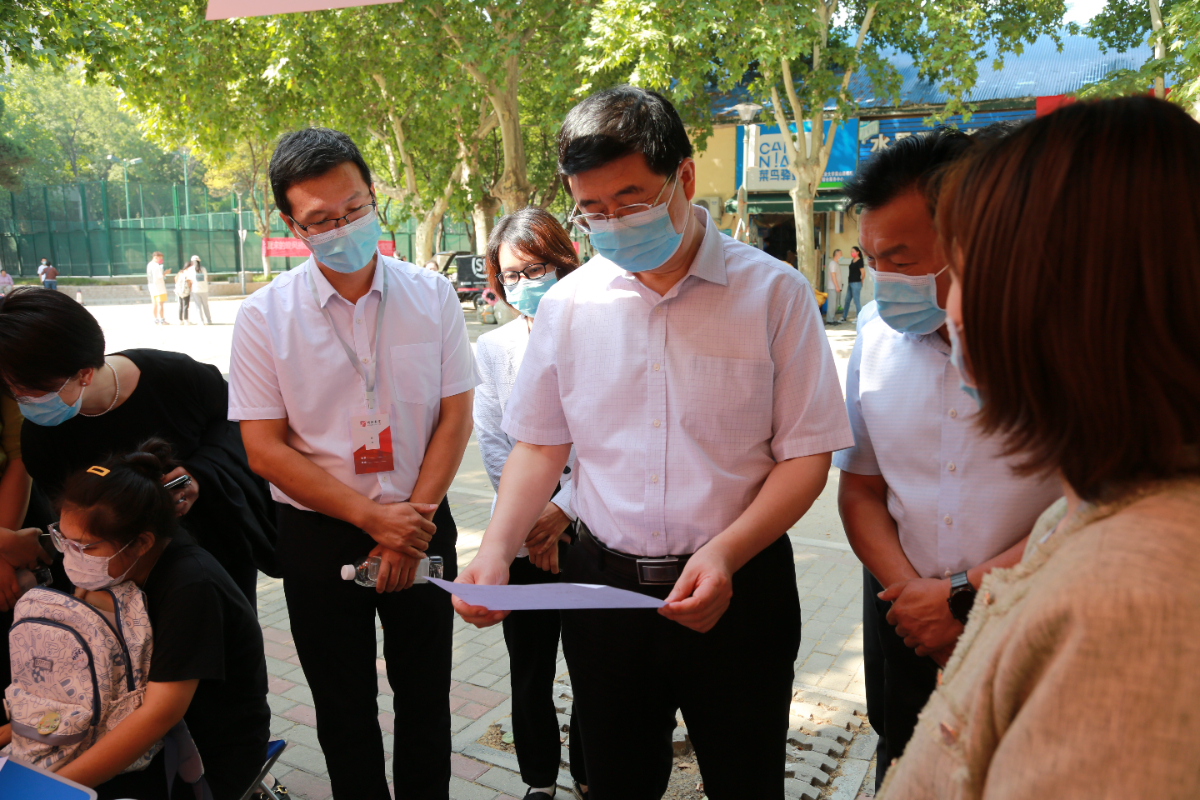 9月22号上午,校党委书记刘志军,校党委副书记、工会主席李学雷在党委办公室、党委统战部、学生工作部和管理学院、外语学院、新闻与传播学院相关负责人陪同下深入嵩山路校区迎新现场,亲切慰问新生、工作人员及志愿者们,仔细询问新生报到情况,深入了解新生报到工作安排,与在场的新生进行亲切交流,勉励同学们尽快适应大学生活,合理规划大学生涯,珍惜宝贵时光,学好专业知识,全面提升综合素质,争做德智体美劳全面发展的新时代大学生。