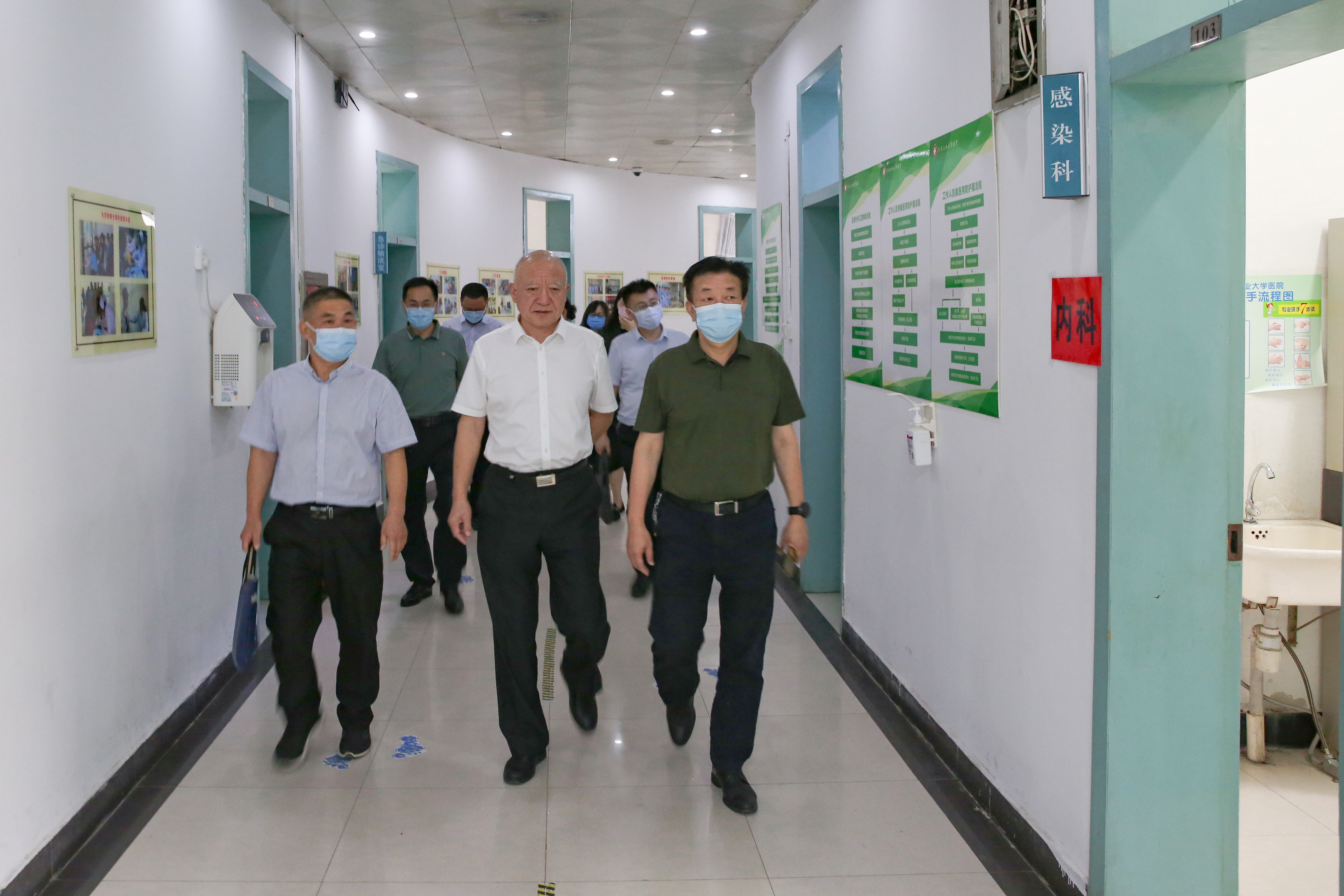 会后,张晓根一行实地检查了校医院、校园餐厅、学生宿舍、大学生心理健康中心等重点区域的疫情防控措施落实情况和疫情防控物资储备情况,并查阅了相关资料。