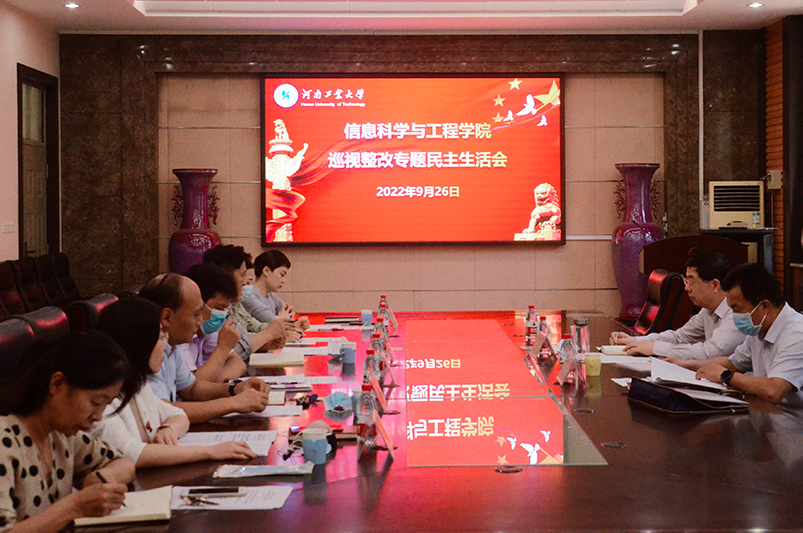 信息学院领导班子结合岗位职责,分别汇报了党的建设和学科、人才、教学、科研、学生管理等专项工作进展情况。随后,班子成员严格按照乐鱼online(中国)党委统一部署,召开了“巡视整改专题民主生活会”,紧紧围绕省委巡视反馈的六个方面问题,认真开展批评与自我批评,全面查摆自身存在的问题和不足,深入剖析思想根源,提出了端正思想、改进工作的具体思路和举措。