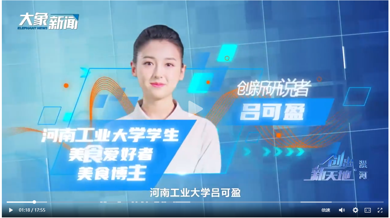《创出新天地•漯河篇》已入选国家广电总局2022年重点节目,省委书记楼阳生专门作出指示,省委常委、宣传部长王战营批示肯定。校团委主动对接河南广播电视台,成功推荐我校新闻与传播学院学生吕可盈作为“创新研说者”主持此节目。节目中吕可盈带领大家走进双汇、卫龙、中大恒源、宠物经济产业园等企业、园区,打卡漯河新食“尚”,生动展现食品产业呈现的新亮点、新成效、新形象、新图景。