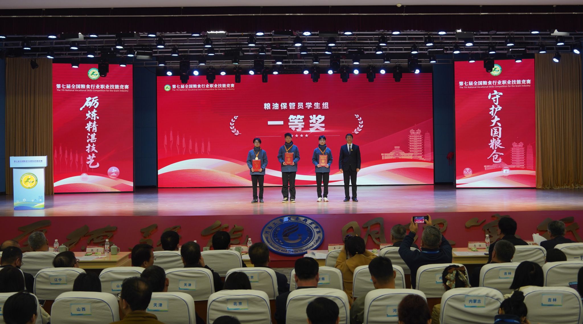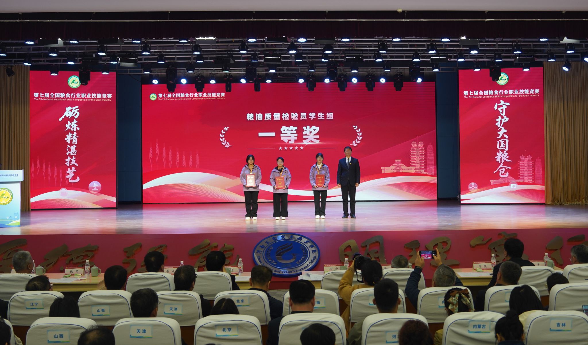 在这场汇聚全国粮食行业精英的技能盛宴中,我校粮食和物资储备学院学子表现优异,取得重大突破,荣获本科组全国一等奖 2 项(该组别仅设 2 项一等奖,赵睿琦、罗天优)、全国二等奖 1 项(屈恒菲)、全国三等奖3项(蒋志帅、梁心广、杨揆),获奖成绩创历史新高。同时,我校凭借出色的组织管理和优秀的竞赛成果,荣获“优秀院校奖”。