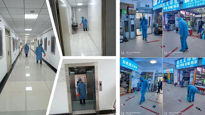 校园服务管理科义无反顾地扛起了全校范围的消杀工作任务,严格按照校园环境及楼宇消杀要求。他们穿上防护服、戴上口罩、背着沉甸甸的消杀设备,对各个场所,尤其是使用频繁的场所和公共物品进行喷洒、擦拭、消毒,加大各公共卫生区域的消毒通风清洁频次,消毒车分时分段对校园进行喷洒,确保不留盲区。除此之外,每次校内核酸检测过后,还会对校内多处核酸检测地点,以及核酸检测后的医疗废弃物进行全方面的消杀,不留一丝死角,持续为师生维持健康的校园环境。