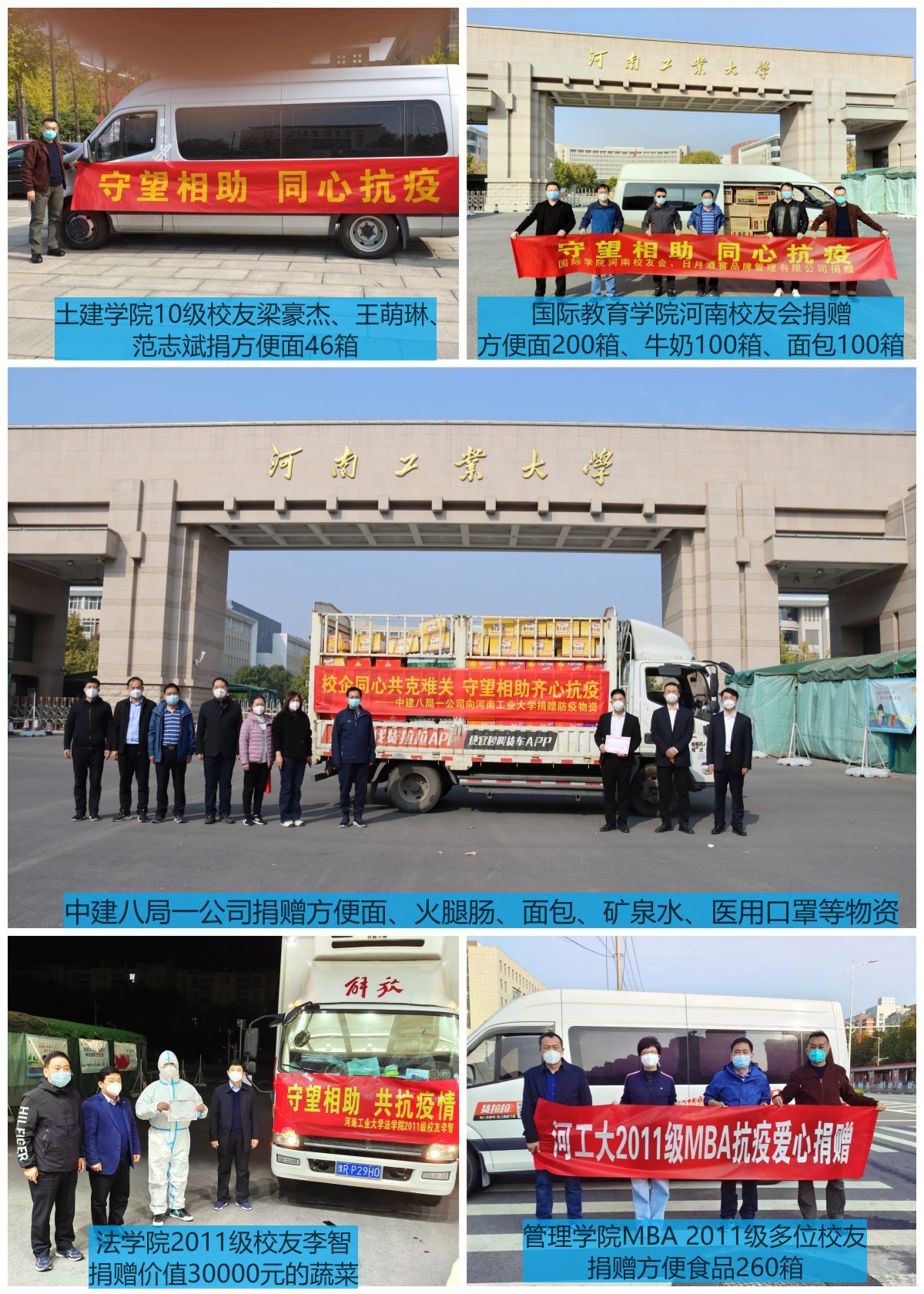 与此同时,广大校友、爱心人士和在校学生还通过留言表达了对乐鱼online(中国)的关心、关注和支持,许多留言感人至深,让人泪目。这里面有退休老校友“疫情不可怕,处处有真情,捐一个月退休金聊表心意,辛苦啦!”,也有17级海外校友“虽身在南非,但心系母校,为母校助力!”;有本科生“刚下课的老师又穿上厚厚的防护服,既要带领我们学习,又要争分夺秒照顾我们的吃饭和生活,我们能够安心、安全的待在宿舍,真的想说一句辛苦了!工大加油!”,也有研究生“看到负责老师为了让同学们吃上口热饭焦头烂额,也看到每天为我们做核酸的大白,累得自己捶腰”;有学生家长“作为学生家长,一直心系河工大,有老师们的悉心照顾,我们安心、放心,也有信心”,也有年轻教师“从三尺讲台转战抗疫一线,有党员干部冲锋在前,有老师学生团结坚守,我们定能践行初心使命,彰显师者担当”,更有在职老教师“30年的时间,河南工业大学这个名字早已融入我的血液,融入无数为她奋斗的师生员工的血液,我们在他的怀抱里成长,这里的每一丝空气都与我们息息相关。特殊时期,让我们手拉手,心相依,汇聚无穷的力量;特殊时期,让我们守望相助,众志成城,共克时艰;特殊时期,让我们坚定信心,勇于担当,迎接黎明”……这一句句感人肺腑的言语更加坚定了全校师生战胜疫情的信心和决心。