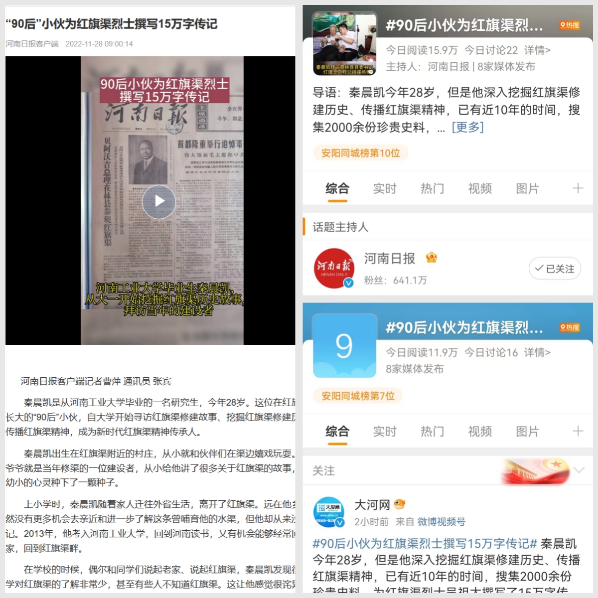 河南日报:“90后”小伙为红旗渠烈士撰写15万字传记