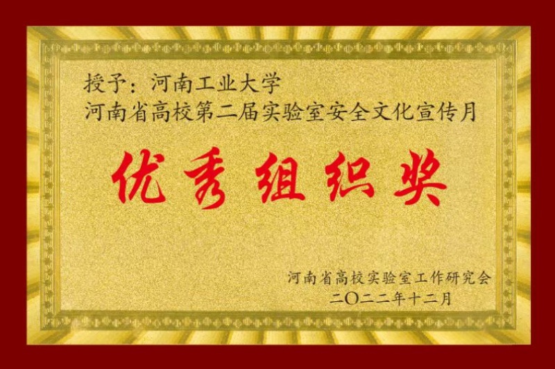 河南省高校第二届实验室安全文化宣传月优秀组织奖