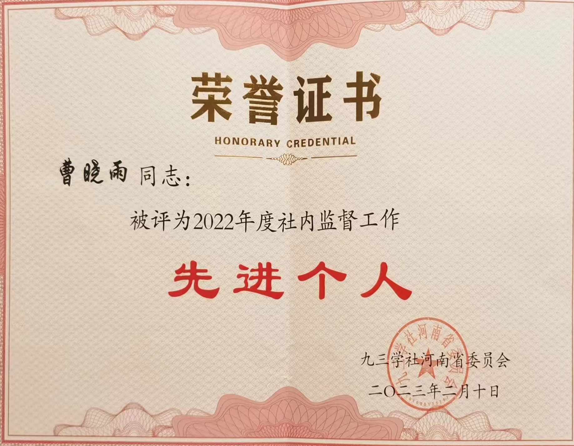 在当天的大会上,我校九三学社委员会主委栗正新教授被评为“九三学社中央委员会社会服务先进个人”,我校九三学社获得了河南省“2022年度社会服务先进单位”荣誉称号,一支社获得了“九三学社河南省委员会社内监督先进集体”称号。一支社主委曹晓雨教授被评为“2022年度九三学社河南省委员会社内监督工作先进个人”。我校九三学社主委栗正新的《“一千亿两中心”为目标,打造河南省现代超硬材料产业集群》和《政府主导、产学研合作打造县域产业集聚区共性技术创新平台》两个参政议政提案被河南省政协和全国政协采纳。大会还特别表扬了我校九三学社在校企合作中开展的科技创新工作。
