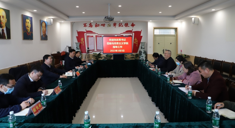 3月3日,校党委书记刘志军,在党委办公室、党委宣传部、教务处等部门负责同志陪同下,深入马克思主义学院调研指导工作。马克思主义学院领导班子成员、教研室主任参加会议。