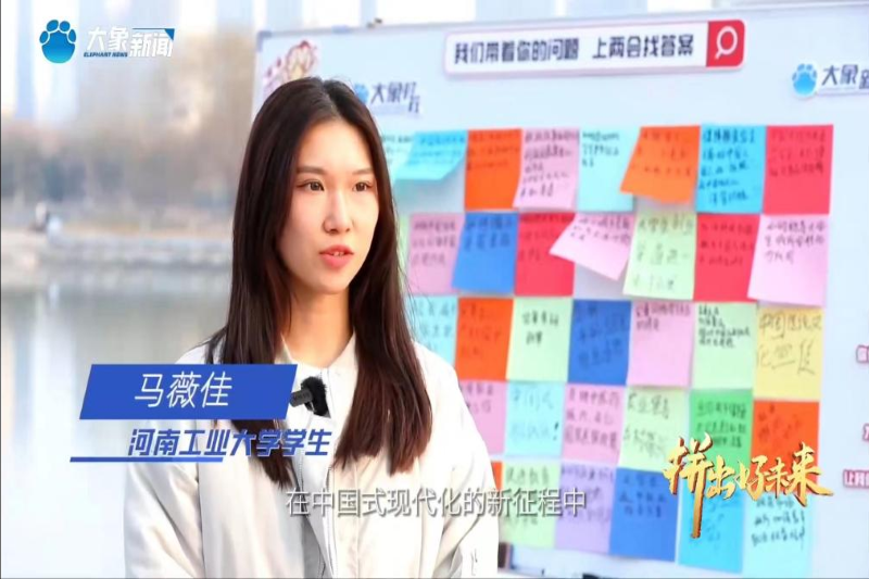 为引导当代大学生关心国家大事、关注社会热点,充分吸纳及表达当代大学生热情、理性、建设性的声音。由河南广播电视台、共青团河南省委联合特别推出的节目《玥读·带你上两会丨假如两会是道选择题,看“Z世代”们怎么选?》于3月6日播出,我校设计艺术学院学生孙梦丽及数名学生受邀参加节目采访及录制。节目在大象时政新闻微信视频号、河南共青团微博、河南共青团微信视频号等媒体播出,微博话题浏览量破亿。