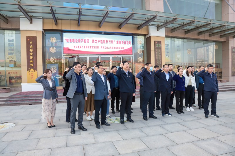 在中国粮食博物馆馆前,全体党员面对庄严的党旗,在省纪委监委第二监督检查室室主任张贺泽的带领下,高举右拳,重温铮铮誓言,字字铿锵有力,思想上再次接受洗礼,牢固树立永远跟党走的理想信念,彰显牢记使命、忠诚履职的诺言和决心。