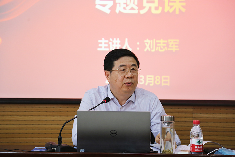 刘志军以“深入学习贯彻党的二十大精神”为主题,从深入领会过去五年的工作和新时代十年的伟大变革、深刻理解党的二十大精神、贯彻落实党的二十大精神等三个方面,结合党史、社会主义发展史及亲身经历,沿着历史的轴线认识新时代,详细解读党的二十大精神。