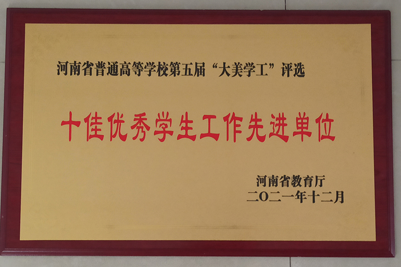 “十佳优秀学生工作先进单位”奖牌