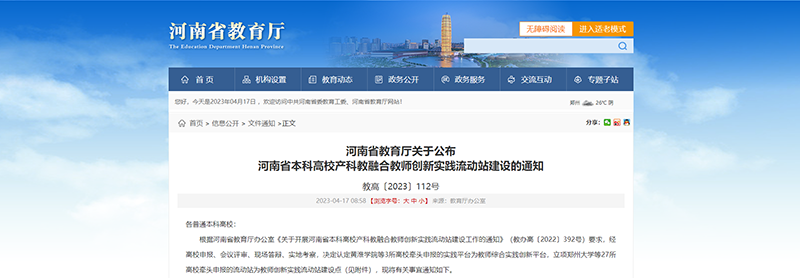 我校获批河南省本科高校产科教融合教师创新实践流动站