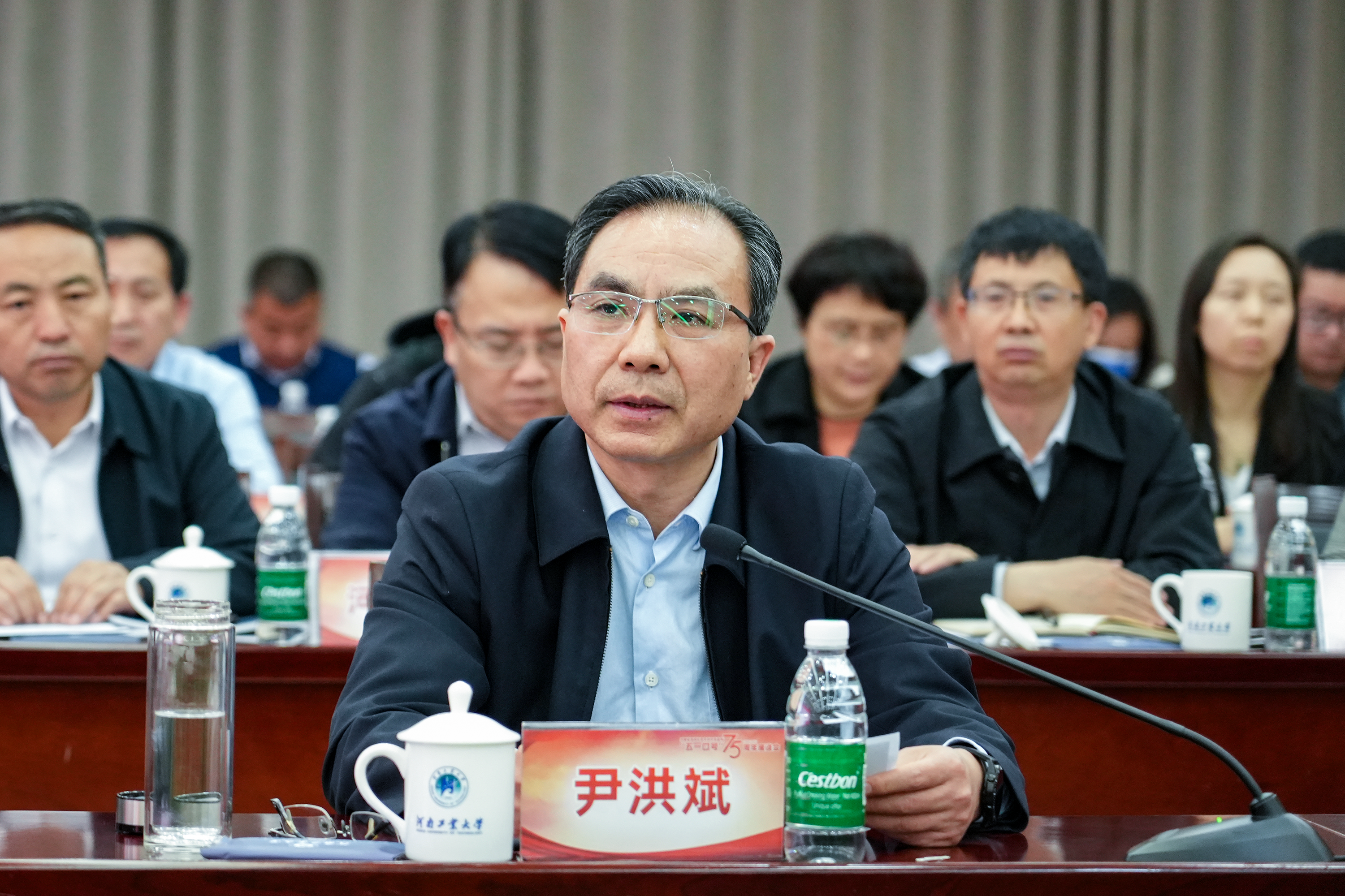 4月27日下午,全省高校纪念中共中央发布“五一口号”75周年专题座谈会、书画展分别在我校学术报告中心D205和科创楼一楼举办。省委统战部副部长梁险峰、省委教育工委专职副书记尹洪斌出席座谈会并讲话。省委教育工委专职委员何秀敏主持座谈会。我省部分高校党委副书记、民主党派、无党派人士代表,我校党委书记刘志军、党委副书记李学雷、副校长曹健及我校民主党派、统战团体代表参加活动。