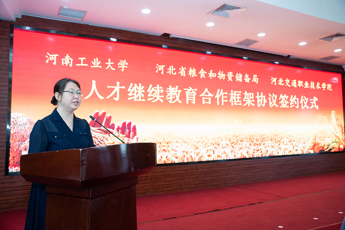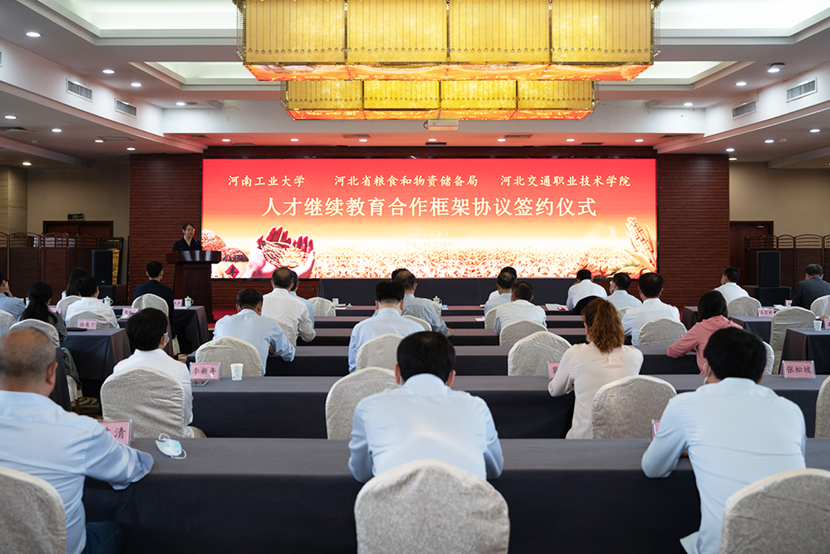 作为粮食生产大省、流通大省和储备大省,河北省粮食产量连续10年稳定在700亿斤以上,粮食供需总量平衡有余,年净调出粮食100亿斤以上,为保障国家粮食安全作出了重要贡献。河北省现有粮食从业人员5.57万人,大专及以上学历人员1.77万人,占总人数的32%。此次人才继续教育合作框架协议的签署将加快河北省粮食和物资储备局建立长期、稳定的职工继续教育基地,在职工继续教育、行业紧缺人才培养、育训研用等方面开展全方位的合作。提升我校服务粮食和物质储备行业人才建设的影响和作用,有助于构建适应粮食和物资储备行业发展的职工技能和学历提升模式,加强专业人才队伍培养,共同推动粮食和物资储备事业高质量发展。