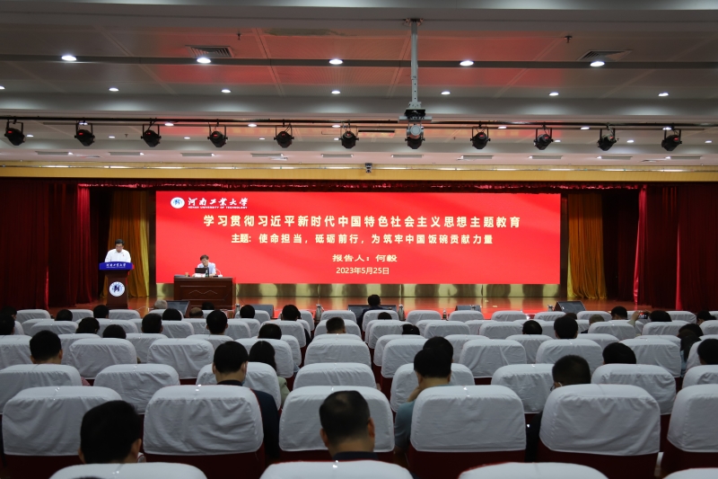 为帮助广大党员、干部更好地理解、掌握习近平总书记关于粮食安全的重要论述,推进主题教育走深走实。5月25日上午,国家粮食和物资储备局原总工程师何毅应邀作题为《使命担当,砥砺前行,为筑牢中国饭碗贡献力量》的专题报告。李成伟校长等校领导、全体中层领导人员参加了专题报告会。报告会由副校长陈复生主持。