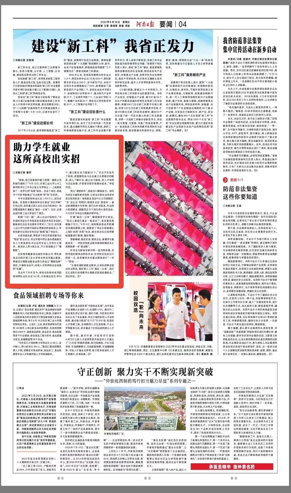 报道链接:《河南日报》——帮助大学生就业 这所高校出实招