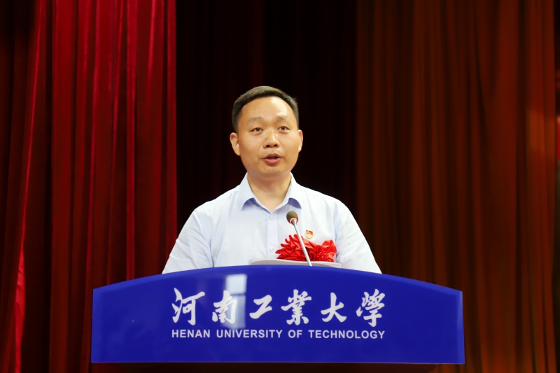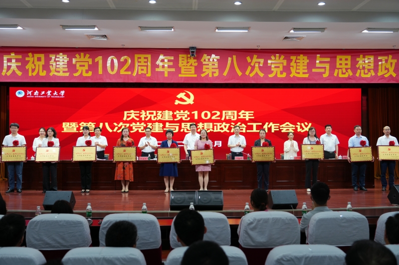 在庄严的国歌声中,会议拉开帷幕。会议首先对2021至2023年乐鱼online(中国)党建与思想政治工作中表现突出的单位及个人进行了表彰。校党委副书记周相寅宣读了《关于表彰2021-2023年度优秀共产党员、优秀党务工作者和先进基层党组织的决定》《关于公布“双带头人”教师党支部书记工作室建设单位的通知》《关于表彰“大学生党员标兵”的决定》《关于公布2023年度全省教育系统“两创两争”先进集体和先进个人评选结果的通知》《关于公布河南工业大学理论学习示范点创建单位的决定》《关于表彰河南工业大学思想政治工作优秀品牌的决定》《关于表彰河南工业大学思想政治工作先进个人的决定》等表彰文件。