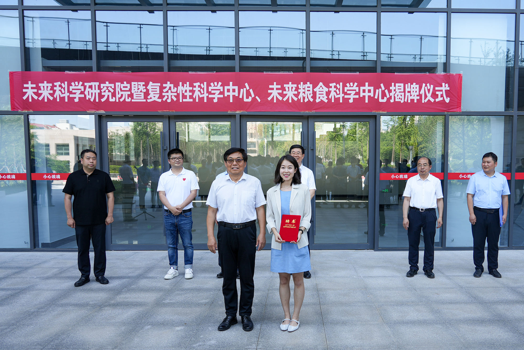 陈志强、刘志军共同为未来科学研究院揭牌。陈复生分别与李鹏和胡元森为复杂性科学中心、未来粮食科学中心揭牌。陈复生为未来科学研究院特聘研究员庞博教授、唐恒安研究员颁发了聘书。