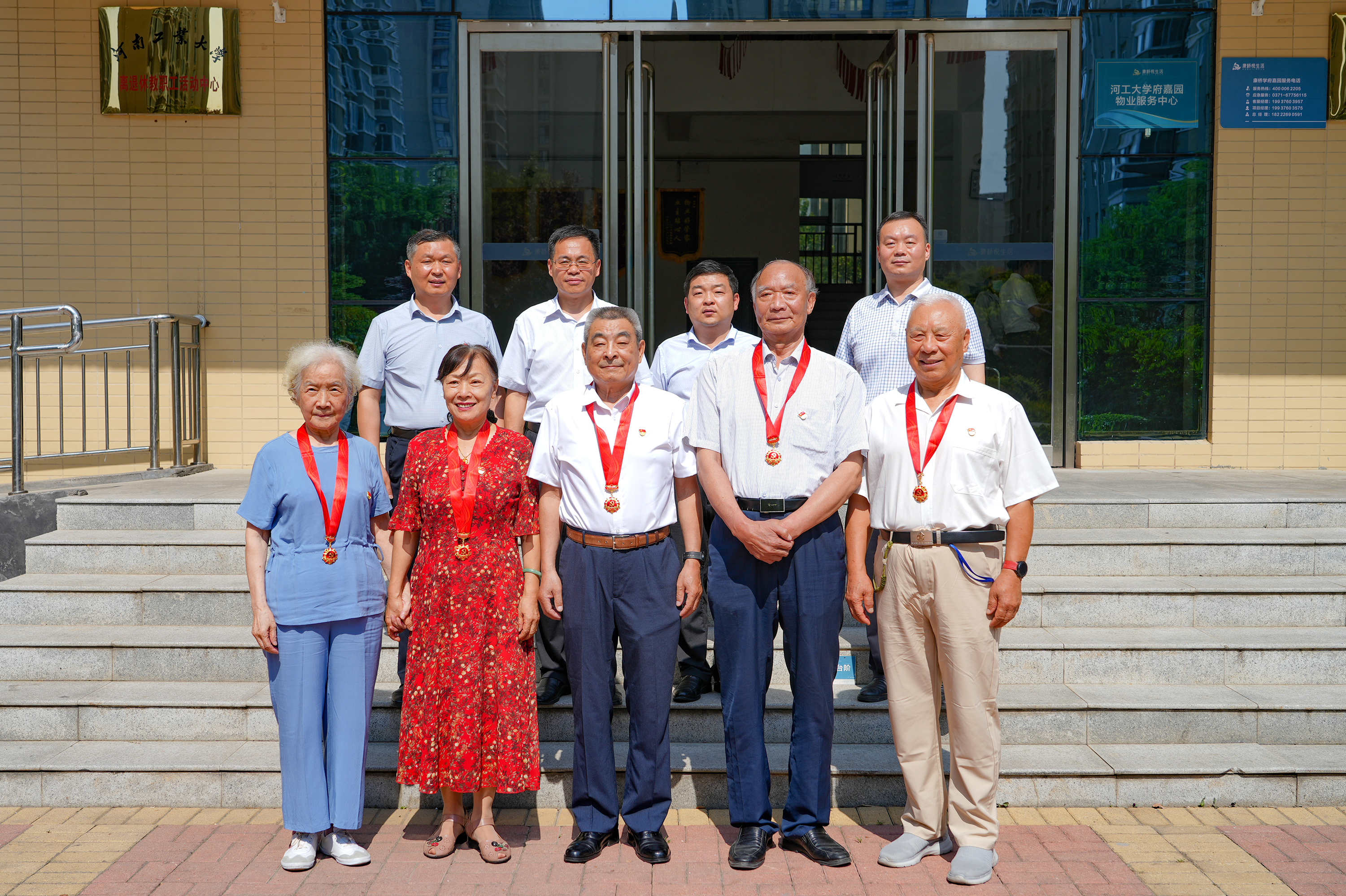 仪式结束后,参会校领导与老党员们集体合影留念。“七一”前夕,离退休工作处登门慰问了45位党龄满60年的老党员,为他们送上党的关怀和温暖。