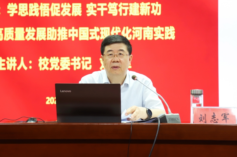 刘志军指出,中国式现代化是我们党领导人民长期探索和实践的重大成果,有着深刻的历史、实践和理论逻辑。广大党员、干部要全面理解中国式现代化道路的探索历程,把握中国式现代化的历史由来,深刻理解把握中国式现代化的理论体系,充分认清中国式现代化的理论意义与实践价值;要深入落实河南省第十一次党代会精神,锚定“两个确保”的奋斗目标,服务河南省“十大战略”,主动融入中国式现代化建设河南实践;要深刻认识建设教育强国对实现中国式现代化的重要意义,充分发挥高校教育强国建设龙头作用,更加主动服务大局、积极超前布局、有效应对变局、奋力开拓新局。