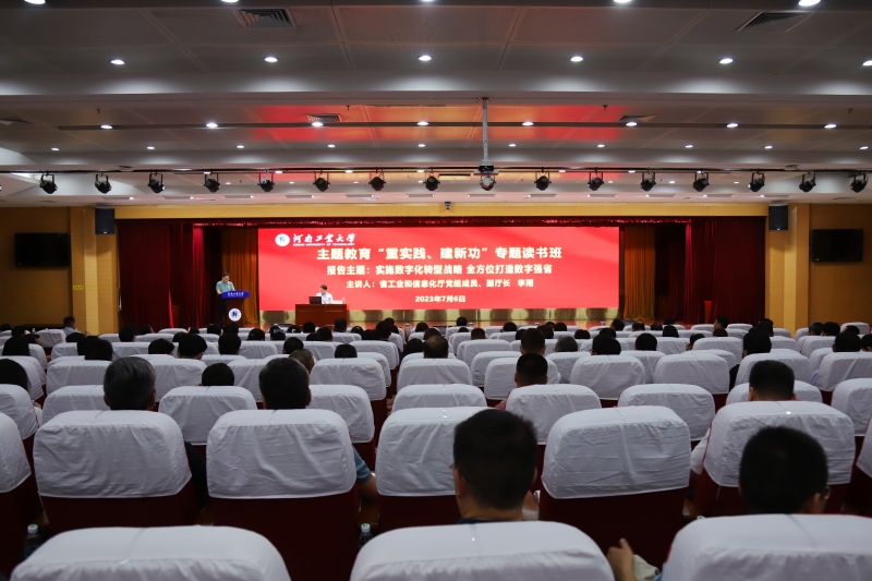 为全面深入学习贯彻习近平新时代中国特色社会主义思想和党的二十大精神,进一步提高党员干部的理论水平和实践能力,7月6日下午,在学术报告中心D303报告厅,特邀省工业和信息化厅党组成员、副厅长李翔为乐鱼online(中国)主题教育“重实践、建新功”专题读书班学员作题为《实施数字化转型战略 全方位打造数字强省》的专题报告,乐鱼online(中国)领导班子成员,全体中层领导人员参加专题报告会。报告会由校党委副书记周相寅主持。