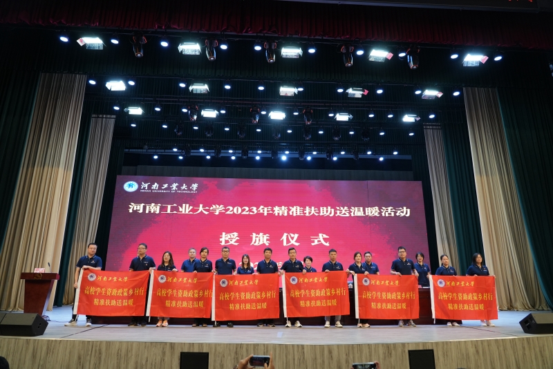 随后,举行我校2023年暑期资助政策乡村行暨“精准扶助送温暖”活动启动仪式,各位领导为各学院小分队进行授旗。