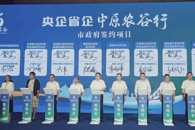 由河南省政府国资委、新乡市人民政府主办,新乡市平原示范区管委会、新乡市国资集团承办的“央企省企中原农谷行”暨重点项目签约仪式于7月21日在新乡市平原示范区举行。校长李成伟、党委副书记李学雷受邀出席,校长办公室、粮食创新发展中心(中国粮食博物馆)、资产经营公司(校办产业管理中心)等单位相关同志陪同参加。活动以“聚力中原农谷共创产业高地”为主题,通过调研考察、发展推介、发言交流、签约共建等形式,来自驻豫央企、省管企业、高校科研院所的110余家单位代表,汇聚一堂,共议“中原农谷”发展。