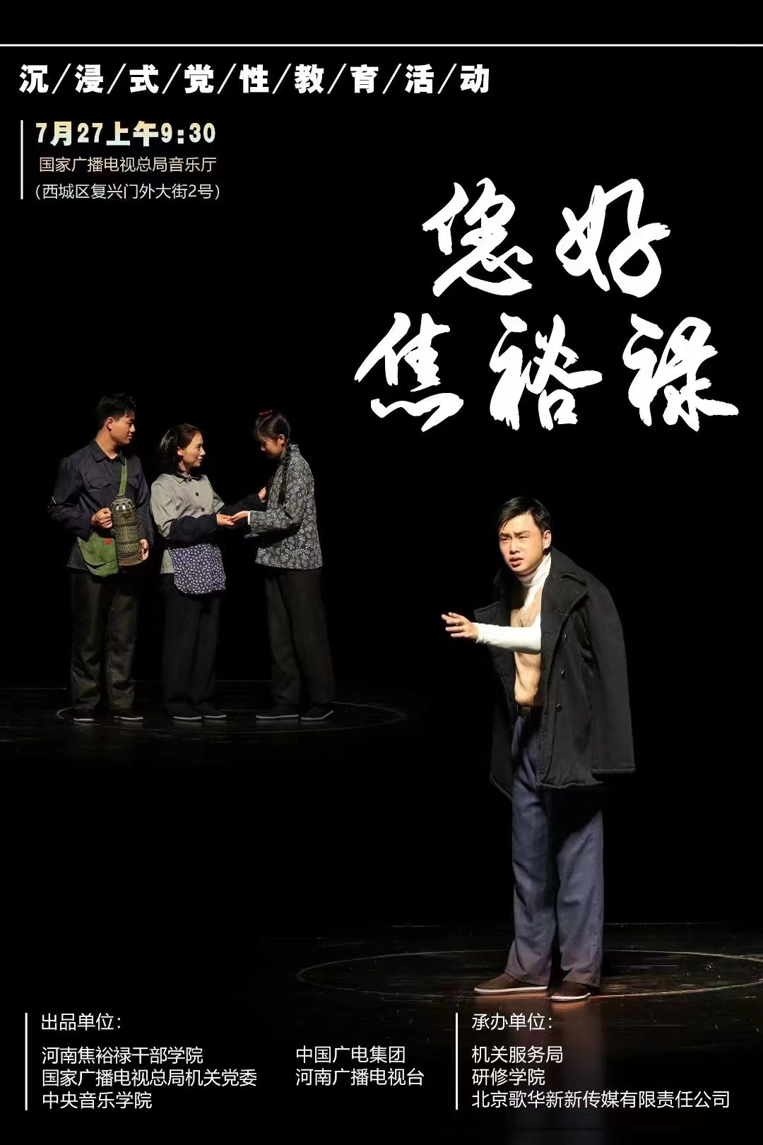为深入学习贯彻党的二十大精神,推动学习贯彻习近平新时代中国特色社会主义思想主题教育走深走实,更好地传承弘扬焦裕禄精神,近日,中央和国家机关工委、国家广电总局联合焦裕禄干部学院举办了《您好,焦裕禄》沉浸式党性教育活动。该剧由我校新闻与传播学院四位毕业生、在校生共同主演,在国家广播电视总局连授三场,获得一致好评并被中央电视台等多家媒体进行报道。