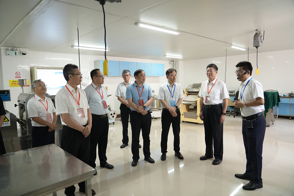 刘昆仑首先对专家组的到来表示热烈欢迎和衷心感谢,简要介绍了中心的整体情况及近年在教学、科研方面主要成果;随后专家组一行先后参观考察了蒸煮食品中试实验室、面条制品中试实验室、小麦组分分离及高效清理中试实验室、粮食制粉中试实验室和谷物研磨技术等实验教学平台。考察期间,刘昆仑依次介绍各实验平台的科研应用、产业结合开展情况及取得成果,重点汇报了中心在本科生开展实践教学、科研活动、毕业试验、新生教育方面所做出的积极贡献,不仅培育本科生的科研素养,还让学生更好地掌握试验技术、接受工程训练,为乐鱼online(中国)不断提高人才培养质量,提供强有力的平台支撑和资源保障;考察过程中,专家对中心实验教学平台饶有兴致的询问了解相关情况。