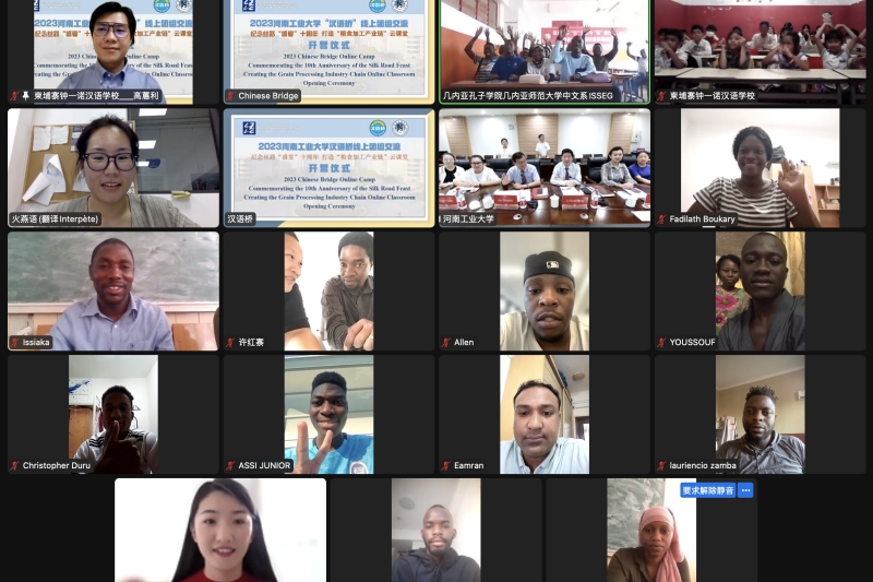 8月28日,由教育部中外语言合作交流中心主办,河南工业大学承办的纪念丝路“盛宴”十周年 打造“粮食加工产业链”云课堂——2023河南工业大学“汉语桥”线上团组交流项目喜获开营。副校长李焕锋出席开营仪式并致词,国际交流与合作处处长张莉、国际教育学院党委书记刘国仕及其他相关老师参加。来自柬埔寨钟一诺中文乐鱼online(中国)和几内亚师范大学共105名师生与大家相聚云端。仪式由国际教育学院党委书记刘国仕主持。