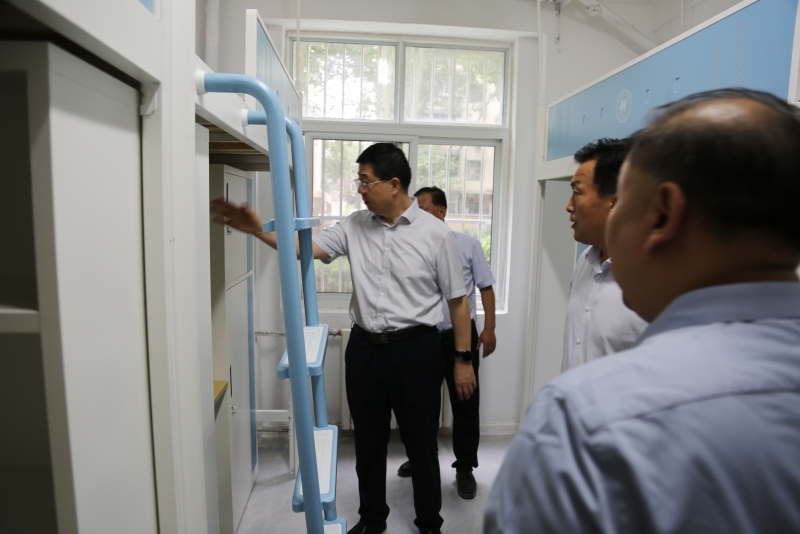 8月30日,党委书记刘志军、副校长兼东校区管理委员会主任牛进平在党委办公室、校长办公室、东校区管委会、资产经营公司、明德书院、教育培训学院等单位负责同志陪同下,深入嵩山路校区教学楼、学生宿舍、餐厅等重点区域,检查指导办学条件改善和开学准备相关工作。