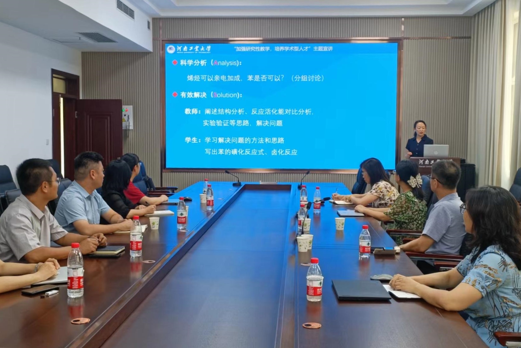 为深入开展“加强研究性教学 培养学术型人才”教学研讨活动,全面保障宣讲效果,我校组建了11人宣讲团。9月4日,宣讲团集体备课会在行政楼B201召开,宣讲团全体成员参加备课会。备课会由教师教学发展中心主任赵静主持。