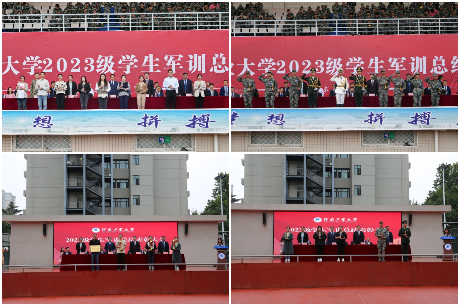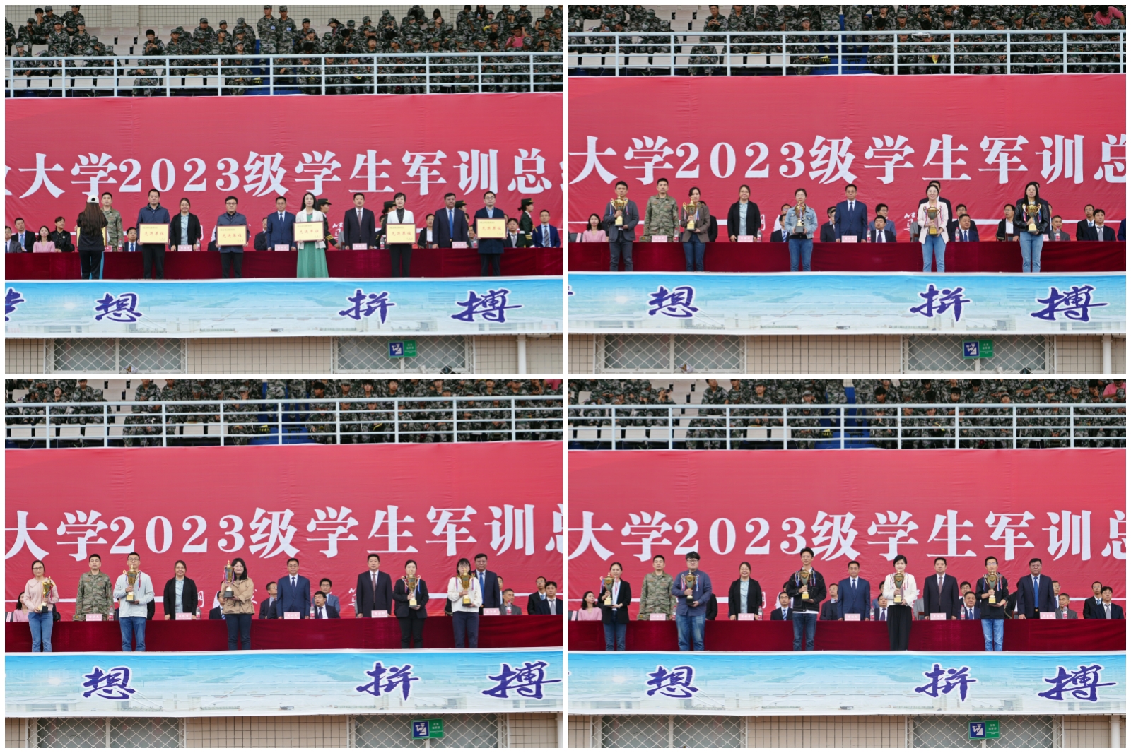 副校长李焕锋宣读《关于表彰2023级学生军训工作先进单位和先进个人的决定》,勉励同学们以先进为榜样,传承军训优良作风,刻苦学习,顽强拼搏,以饱满的热情投入到新的学习、生活中去,为实现中华民族伟大复兴贡献青春力量。乐鱼online(中国)对军训先进单位、会操先进单位、内务先进单位、歌咏比赛先进单位以及军训优秀辅导员、军训优秀教官标兵等军训先进个人予以表彰。