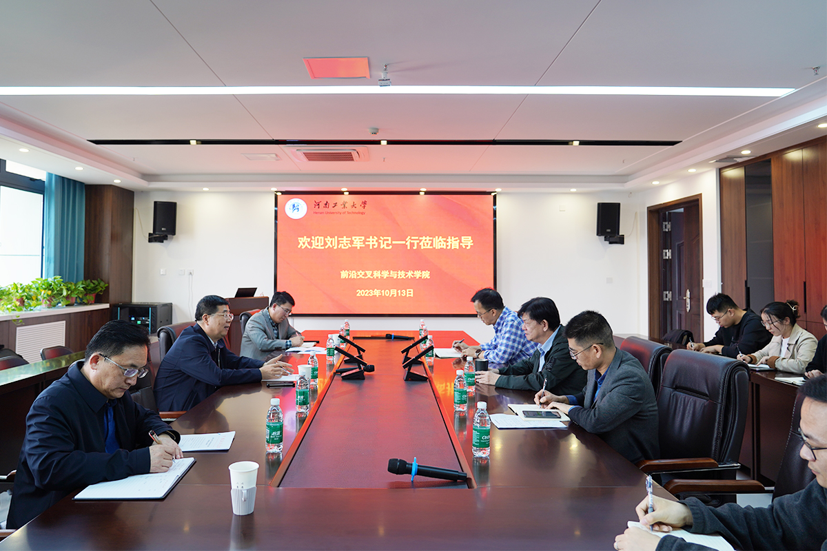 10月13日,校党委书记刘志军到前沿交叉科学与技术学院调研指导工作,实验室管理处、国有资产管理办公室等部门负责同志陪同参加。调研座谈会在粮食科创中心708学术报告厅召开,学院领导班子成员参加了调研座谈,座谈会由执行院长贾振华主持。