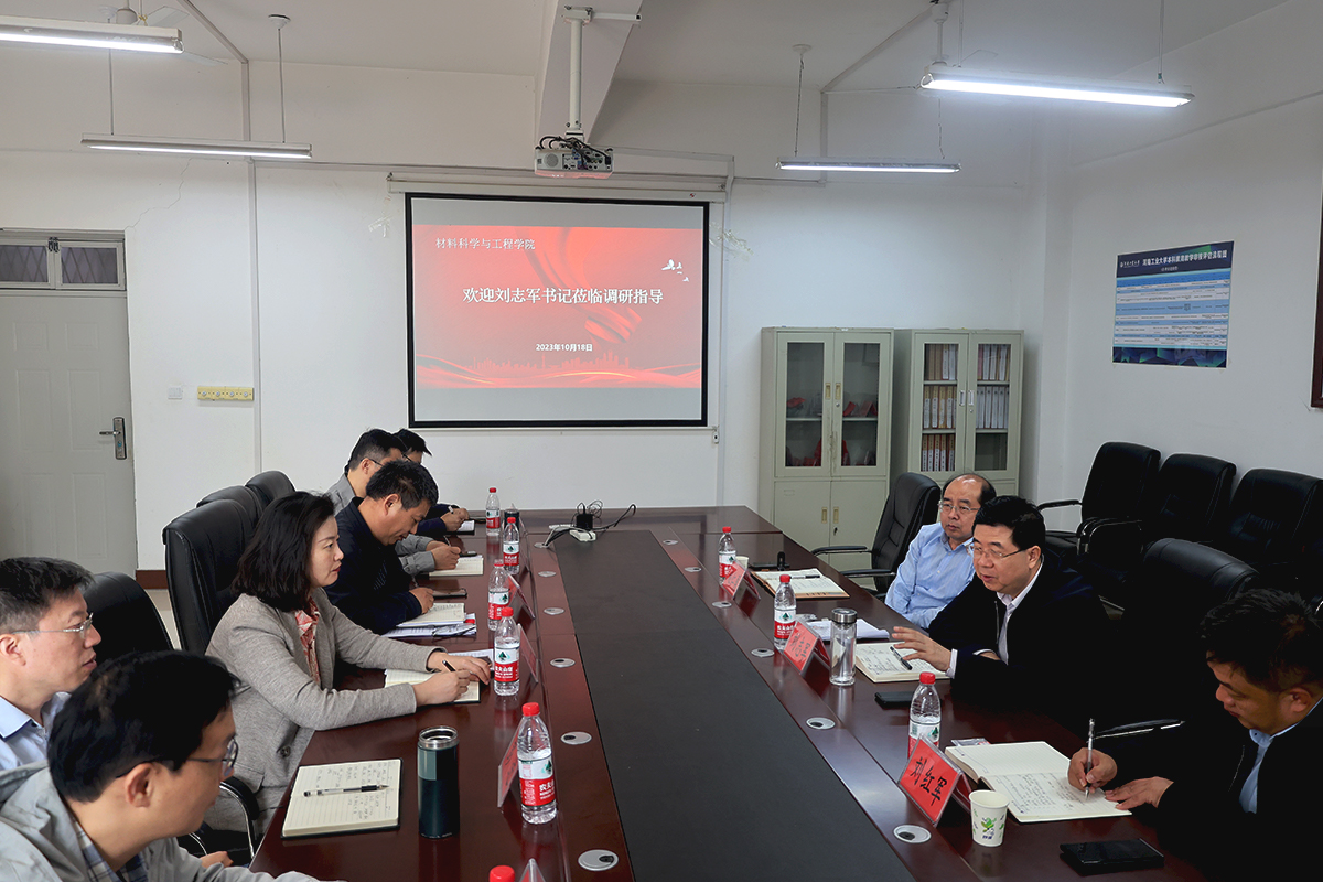 10月18日,校党委书记刘志军到材料科学与工程学院就材料学科建设与我省超硬材料产业对接情况进行专题调研指导,党委办公室、校长办公室主任刘红军和科技处处长赵仁勇陪同调研,学院领导班子成员和材料科学与工程系系主任参加调研座谈会。座谈会由院党委书记车愔主持。