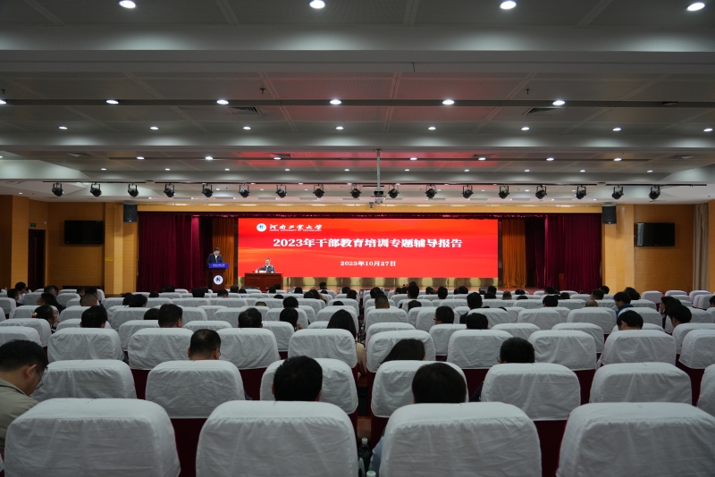 为进一步贯彻落实教育部和省委省政府推进教育数字化转型的部署要求,深入实施我校数字化转型战略,突出数字化在高等教育管理中的赋能作用,助力乐鱼online(中国)“双一流”创建,10月27日下午,乐鱼online(中国)举办干部教育培训专题辅导报告,特邀武汉理工大乐鱼online(中国)长杨宗凯教授作《推进教育数字化加快高等教育创新》专题辅导报告。全校中层领导人员、信息化管理中心、信息科学与工程学院和人工智能与大数据学院的各系(教研室、实验中心)负责人参加报告会,报告会由校党委书记刘志军主持。