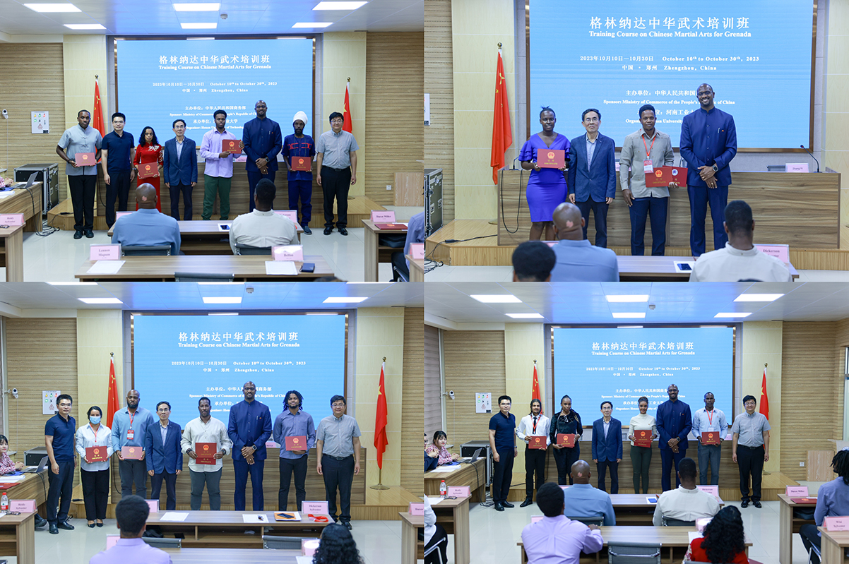 近日,由中华人民共和国商务部主办、河南工业大学承办的“格林纳达中华武术培训班“在我校顺利举办。项目为期21天,来自格林纳达的14名武术教练员、运动员和武术爱好者参加了培训。根据学员需求和基本情况,项目共包括4个课堂讲座、15场现场教学、15场专业实习与实践、2次参观考察、2次文化体验。
