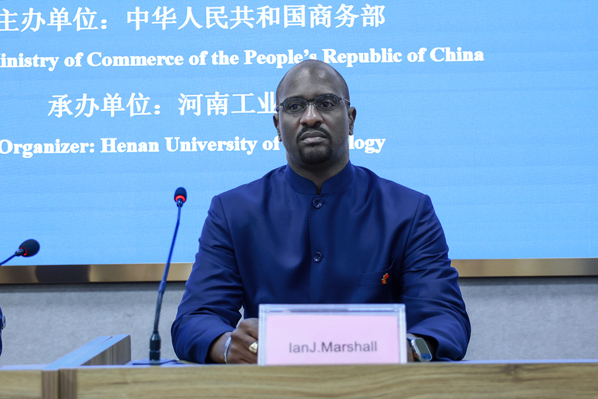 10月11日,格林纳达驻华大使馆特命全权大使Ian J.Marshall(中文名:马岩,线上参会)、河南省商务厅外经处副处长杨军岐、河南工业大学副校长陈桂香、河南工业大学国际交流与合作处处长张莉、教育培训学院副院长张翼,以及来自格林纳达的14位学员共同出席了开班典礼。