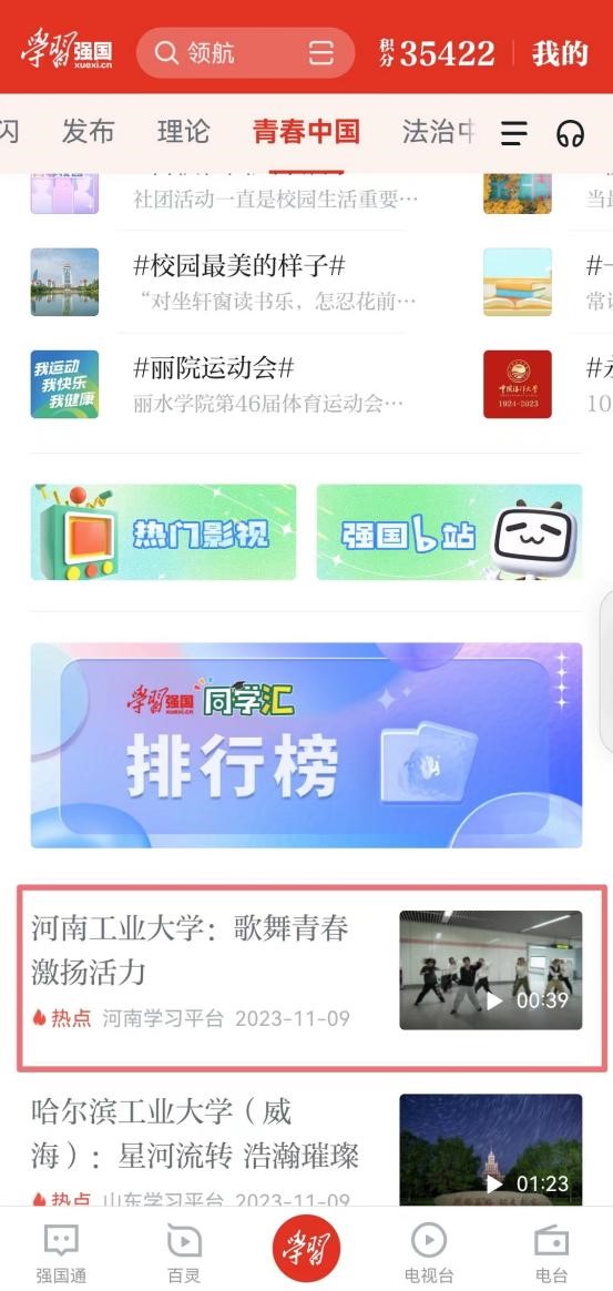 近日,“学习强国”全国平台频道以《河南工业大学:青春歌舞 激扬活力》为题对我校进行视频展播,向大家展示了新时代工大青年的青春风采和精神面貌。