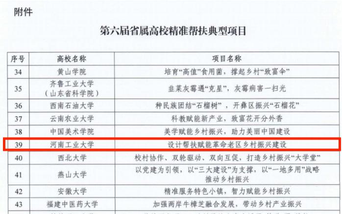 近日,在教育部组织开展的“第六届省属高校精准帮扶典型项目”推选活动中,我校报送的案例《设计帮扶赋能革命老区乡村振兴》成功入选。